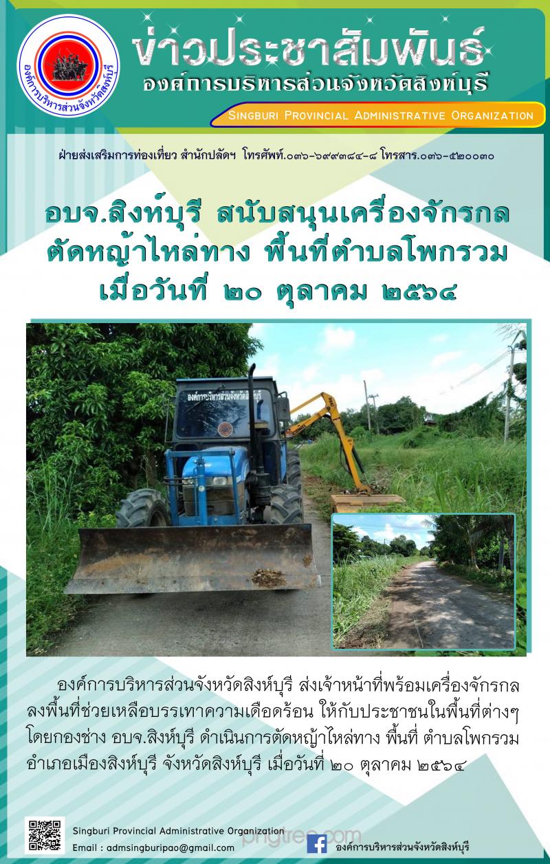 อบจ.สิงห์บุรี สนับสนุนเครื่องจักรกล เก็บกำจัดวัชพืช พื้นที่ตำบลพระงาม และตัดหญ้าไหล่ทาง พื้นที่ตำบลโพกรวม
