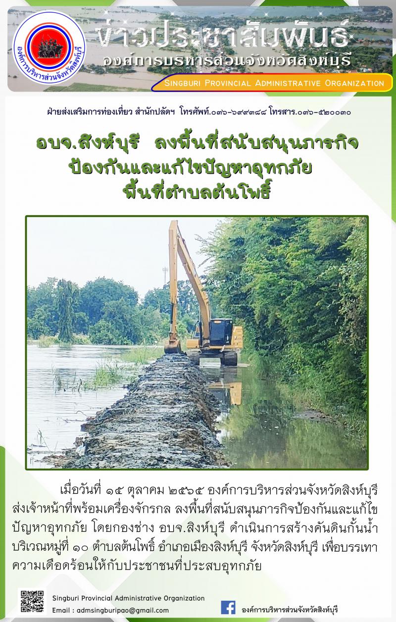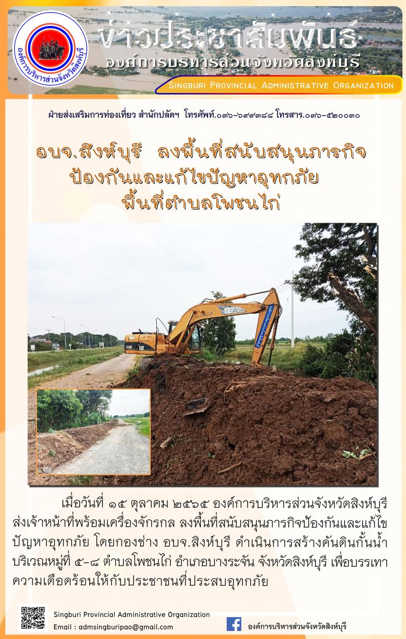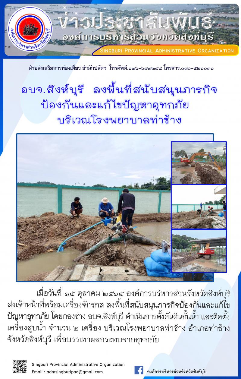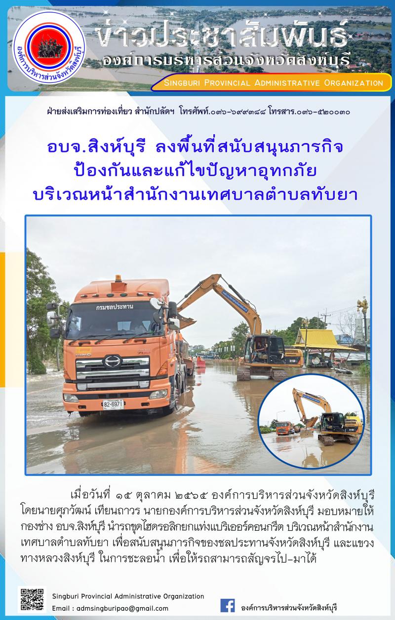 อบจ.สิงห์บุรี ลงพื้นที่สนับสนุนภารกิจ ป้องกันและแก้ไขปัญหาอุทกภัย