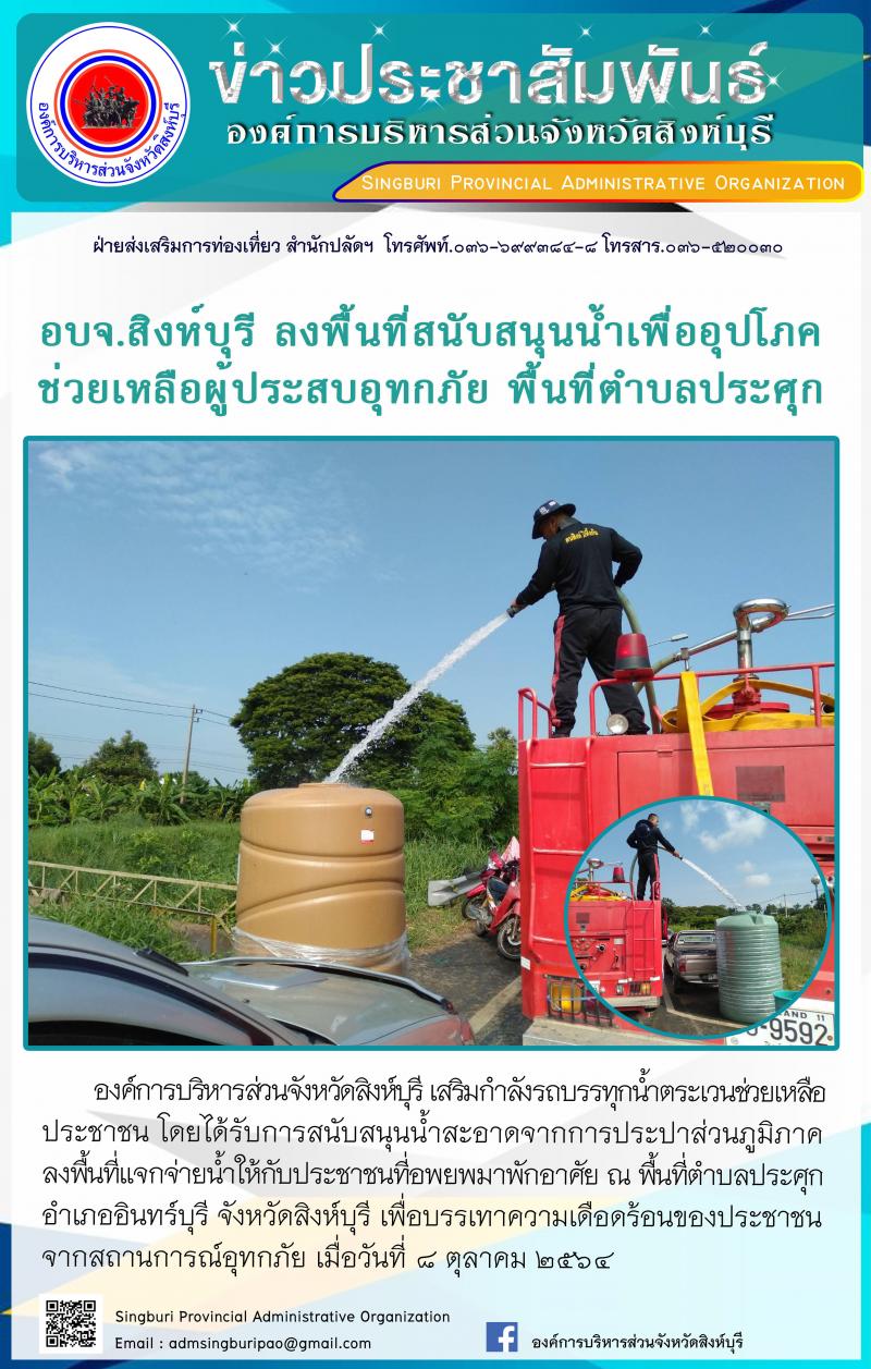 อบจ.สิงห์บุรี ลงพื้นที่สนับสนุนน้ำเพื่ออุปโภคบริโภค ช่วยเหลือผู้ประสบอุทกภัย