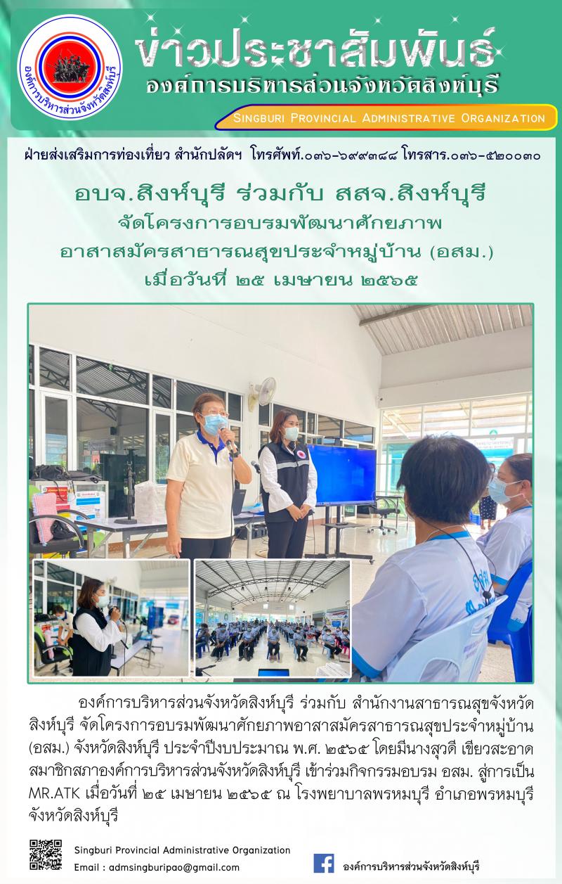 อบจ.สิงห์บุรี ร่วมกับ สสจ.สิงห์บุรี จัดโครงการอบรมพัมนาศักยภาพ อาสาสมัครสาธารณสุขประจำหมู่บ้าน (อสม.)