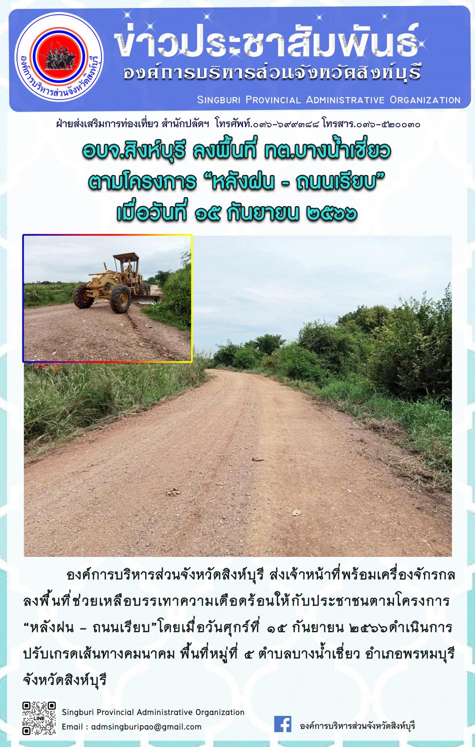 อบจ.สิงห์บุรี ลงพื้นที่ ทต.บางน้ำเชี่ยว ตามโครงการ "หลังฝน - ถนนเรียบ"