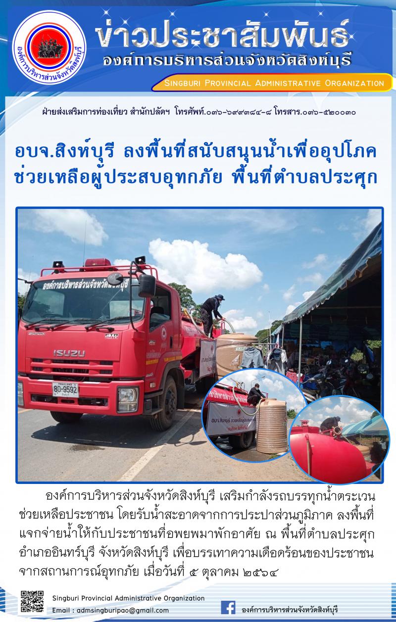 อบจ.สิงห์บุรี ลงพื้นที่สนับสนุนน้ำเพื่ออุปโภคบริโภค ช่วยเหลือผู้ประสบอุทกภัย