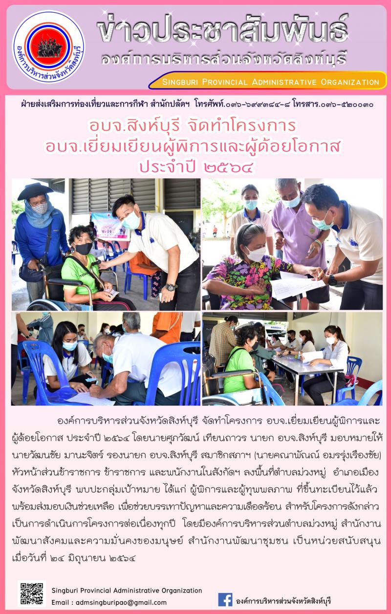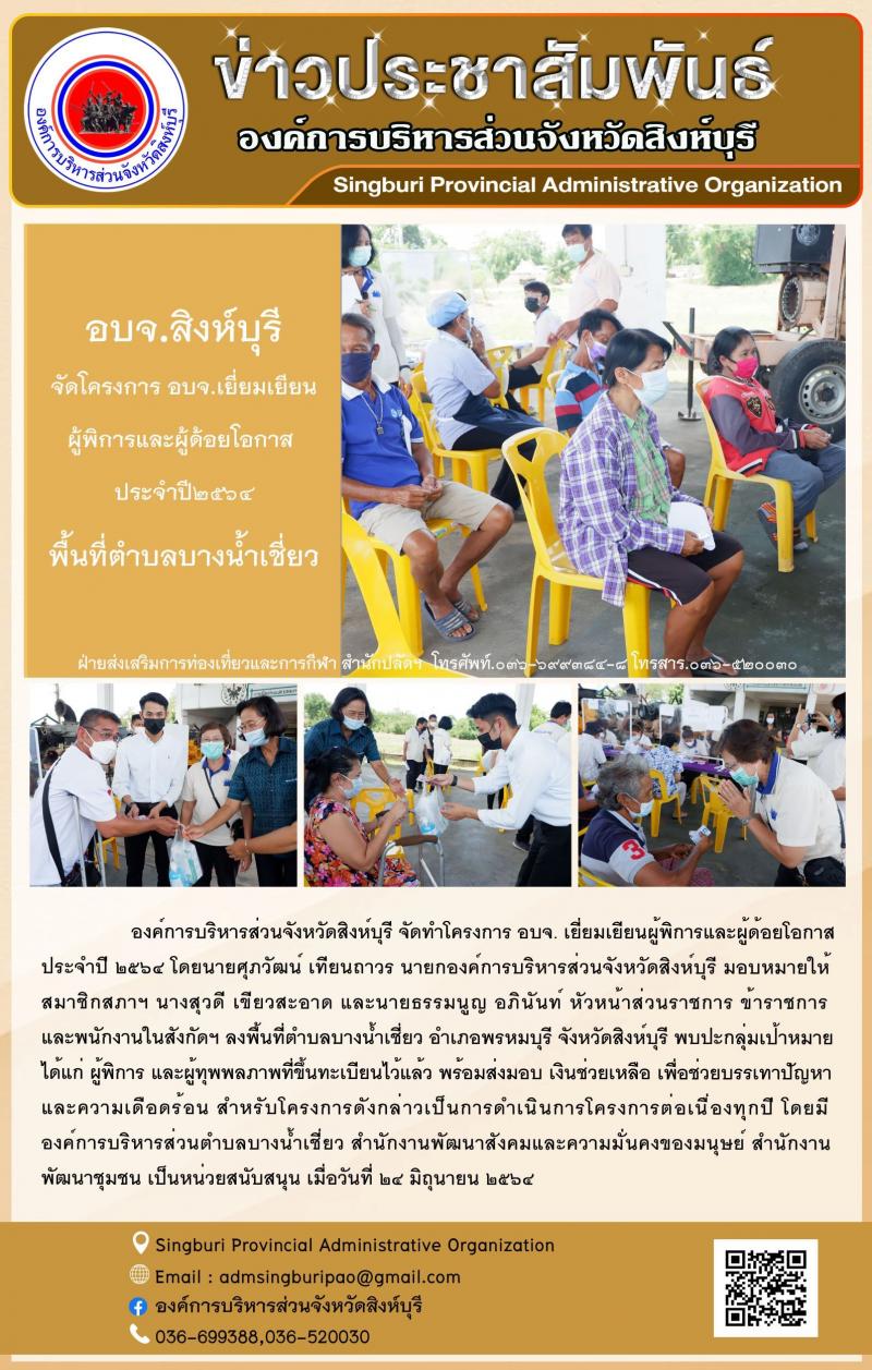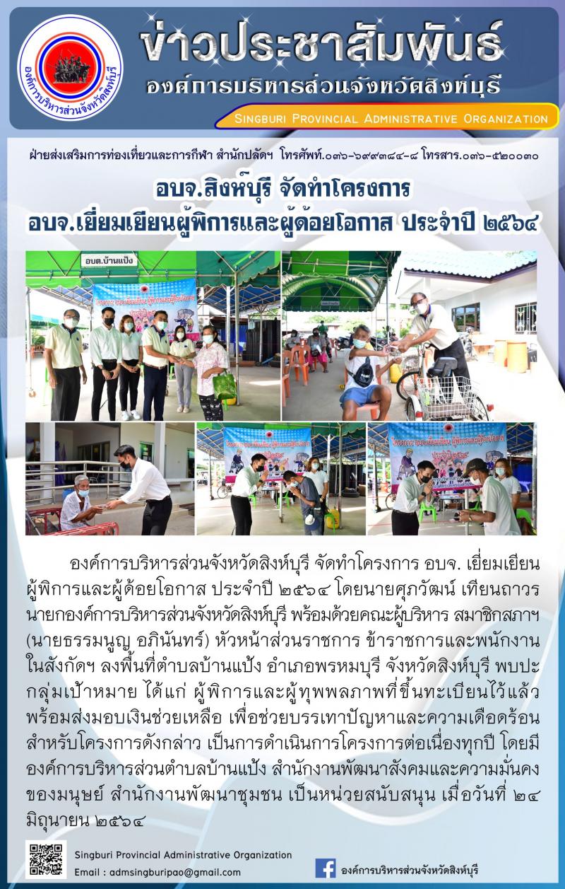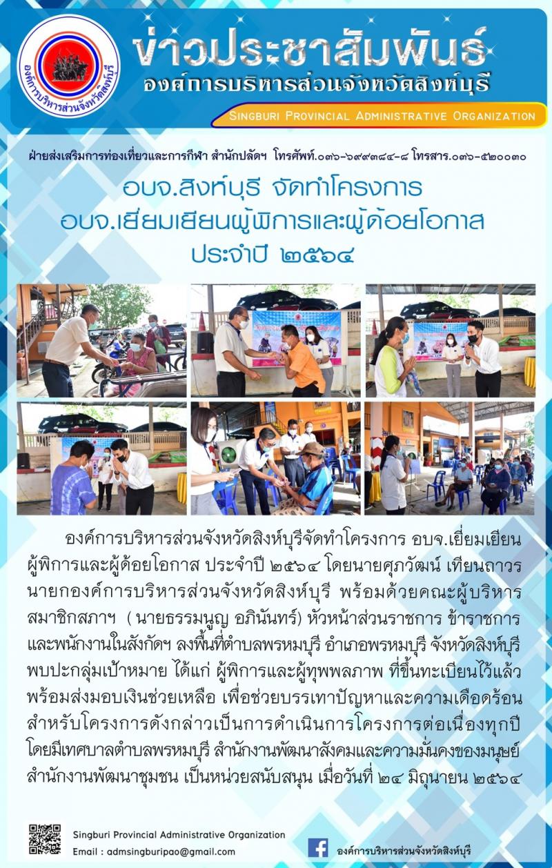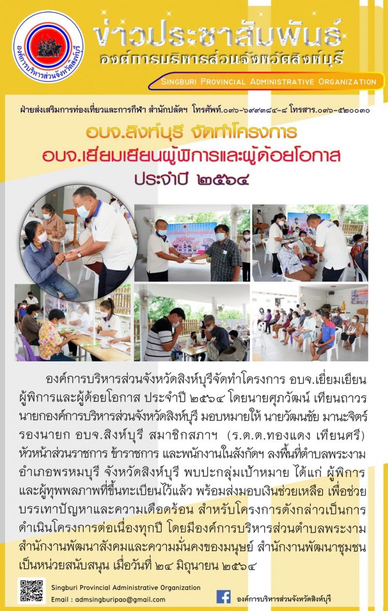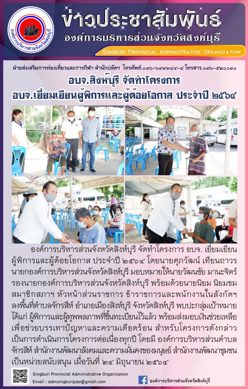อบจ.สิงห์บุรี จัดทำโครงการ อบจ.เยี่ยมเยียนผู้พิการและผู้ด้อยโอกาส ประจำปี 2564