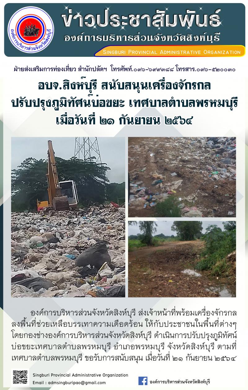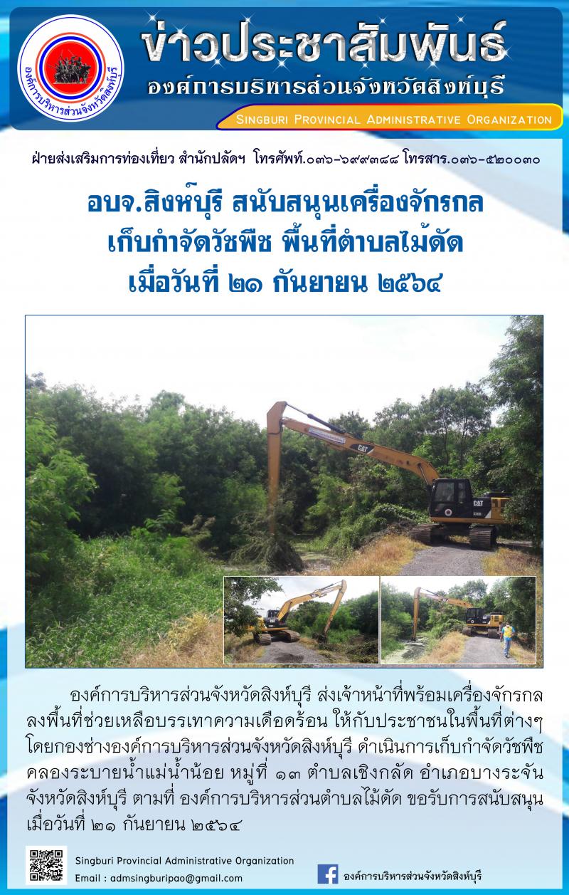 อบจ.สิงห์บุรี สนับสนุนเครื่องจักรกลกำจัดวัชพืช พื้นที่ตำบลไม้ดัด และอุทยานแม่ลา