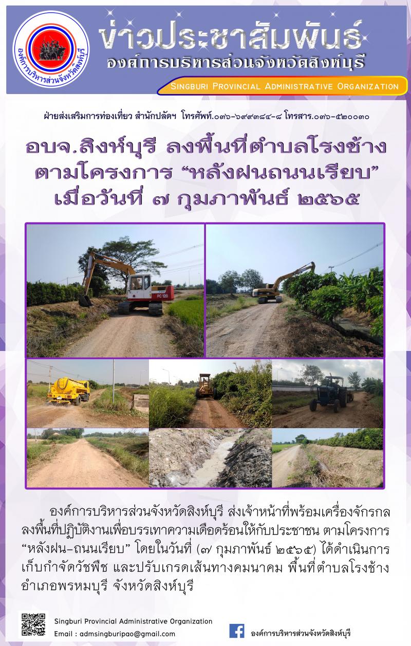 อบจ.สิงห์บุรี ลงพื้นที่ตำบลโพสังโฆ ตามโครงการ "หลังฝนถนนเรียบ"