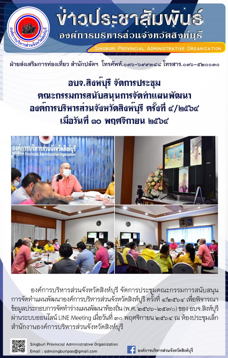 อบจ.สิงห์บุรี จัดการประชุม คณะกรรมการพัฒนาองค์การบริหารส่วนจังหวัดสิงห์บุรี ครั้งที่ ๔/๒๕๖๔