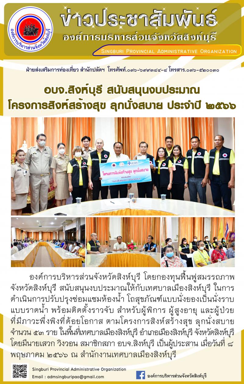 อบจ.สิงห์บุรี สนับสนุนงบประมาณ โครงสิงห์สร้างสุข ลุกนั่งสบาย ประจำปี 2566