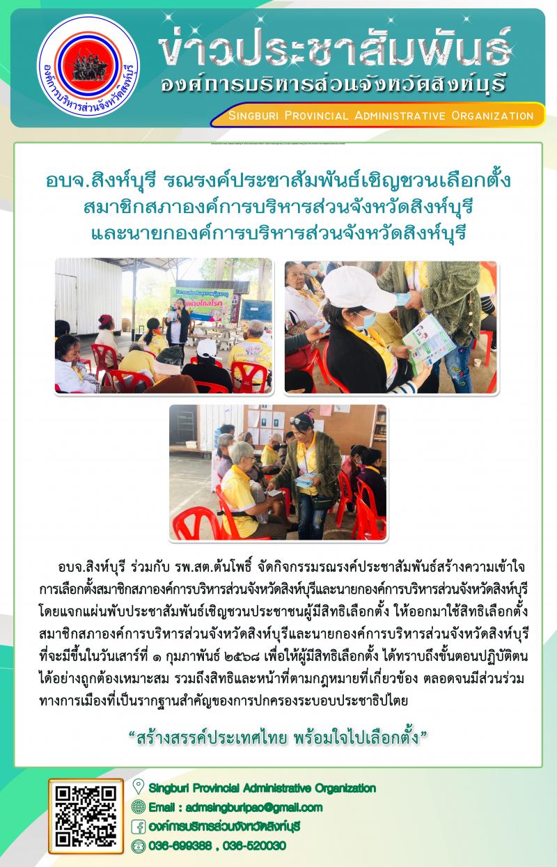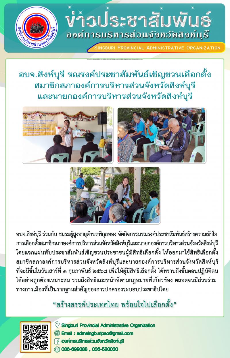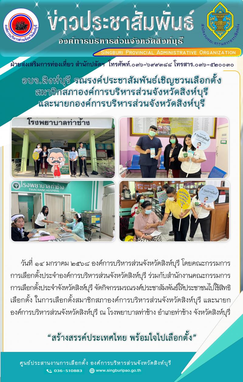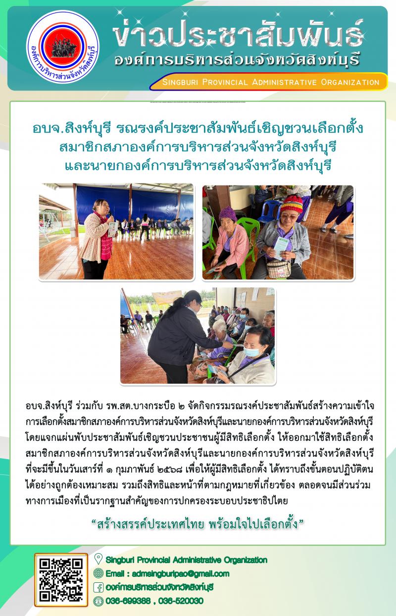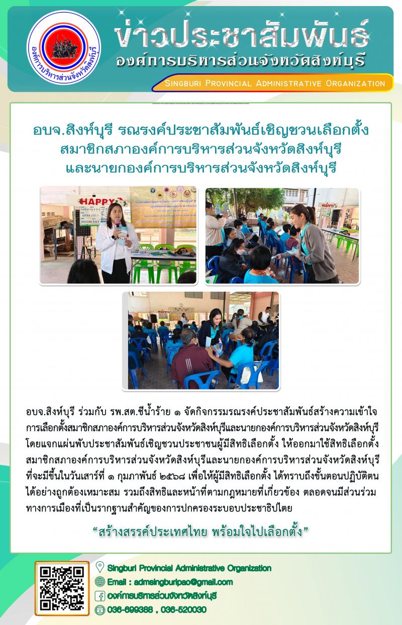 อบจ.สิงห์บุรี รณรงค์ประชาสัมพันธ์เชิญชวนเลือกตั้งสมาชิกสภาองค์การบริหารส่วนจังหวัดสิงห์บุรี และนายกองค์การบริหารส่วนจังหวัดสิงห์บุรี