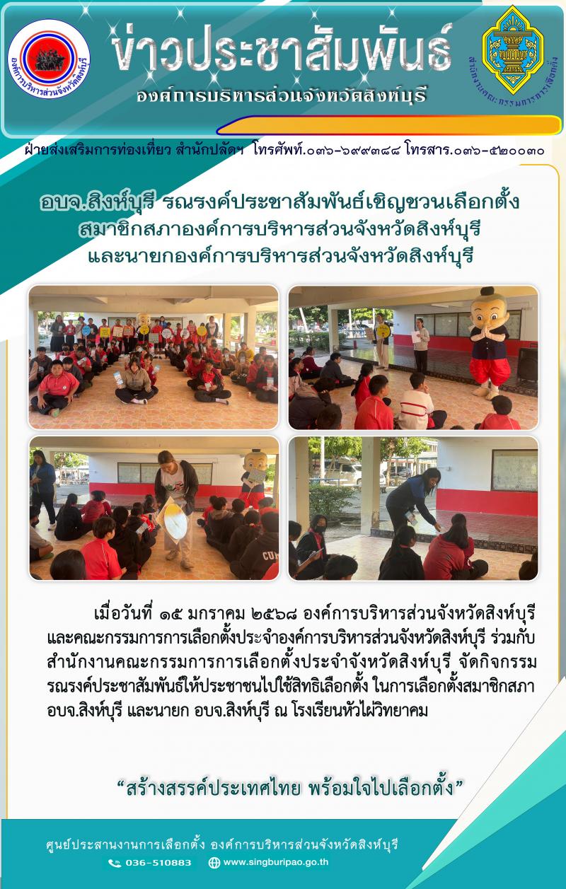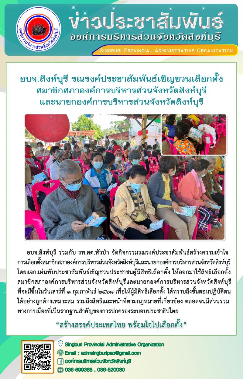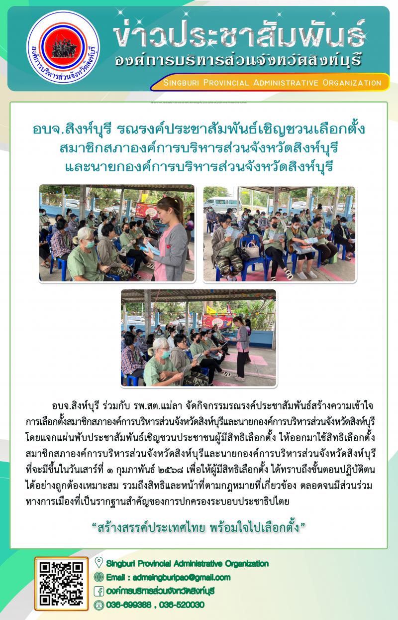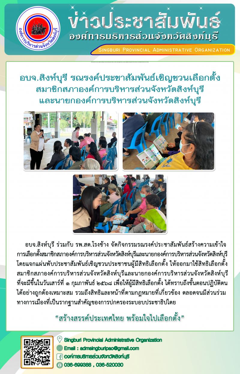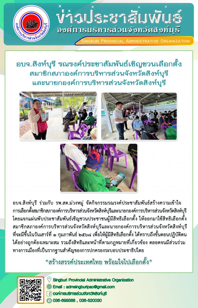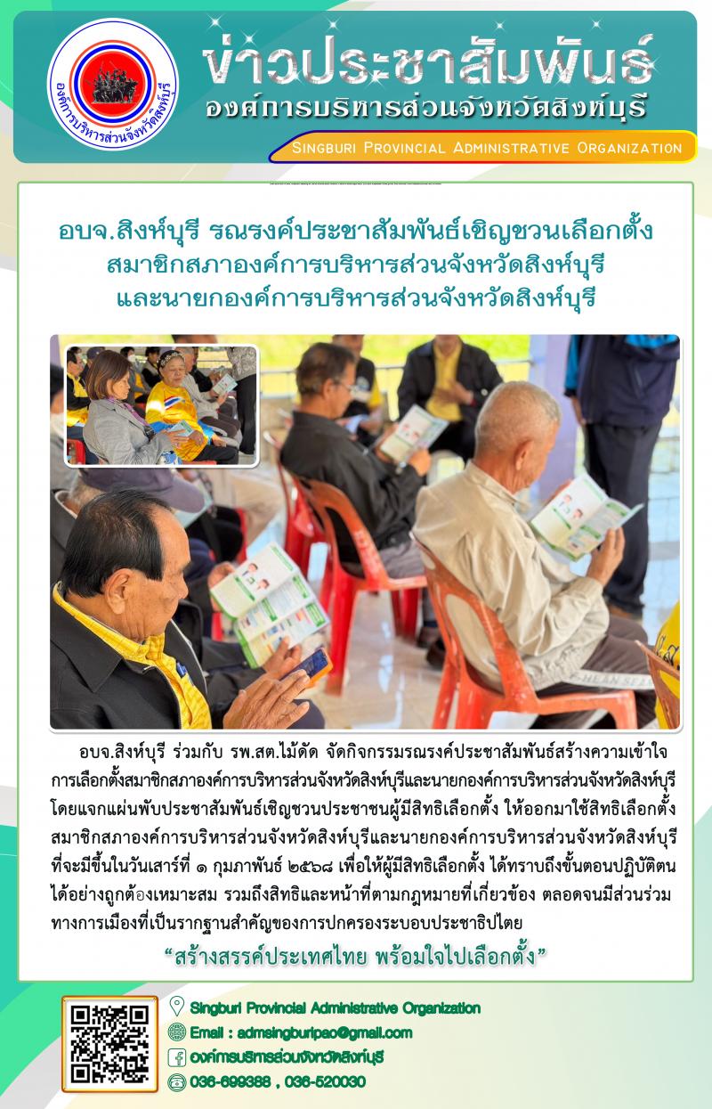 อบจ.สิงห์บุรี รณรงค์ประชาสัมพันธ์เชิญชวนเลือกตั้งสมาชิกสภาองค์การบริหารส่วนจังหวัดสิงห์บุรี และนายกองค์การบริหารส่วนจังหวัดสิงห์บุรี