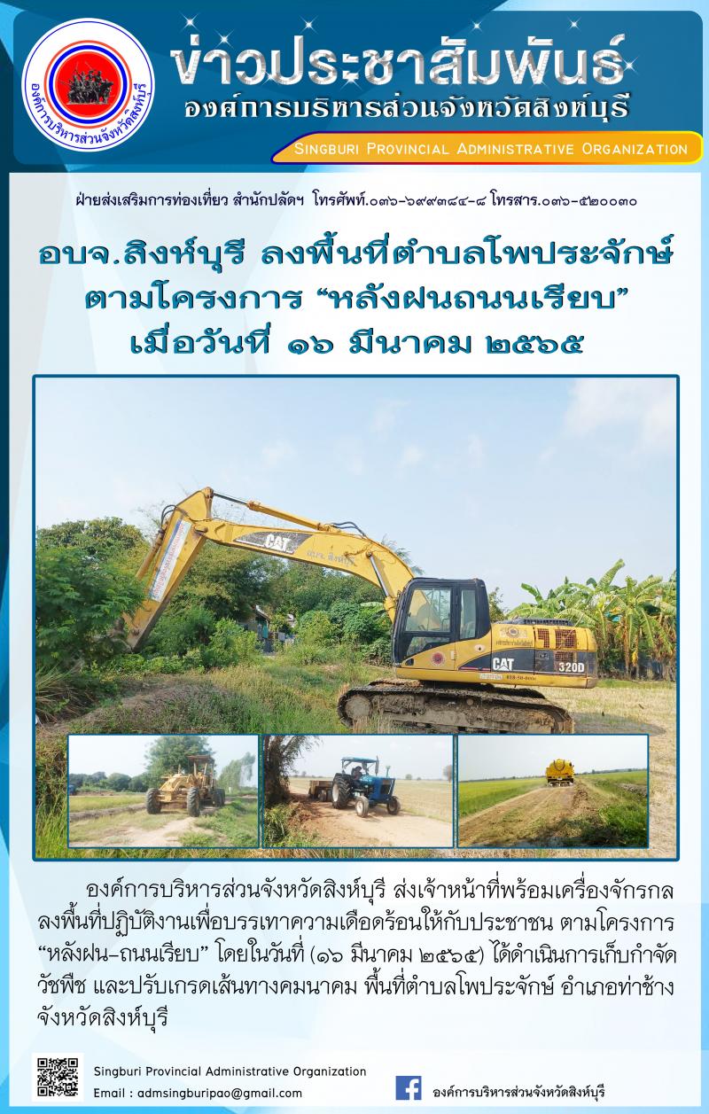 อบจ.สิงห์บุรี ลงพื้นที่ ตามโครงการ "หลังฝนถนนเรียบ"