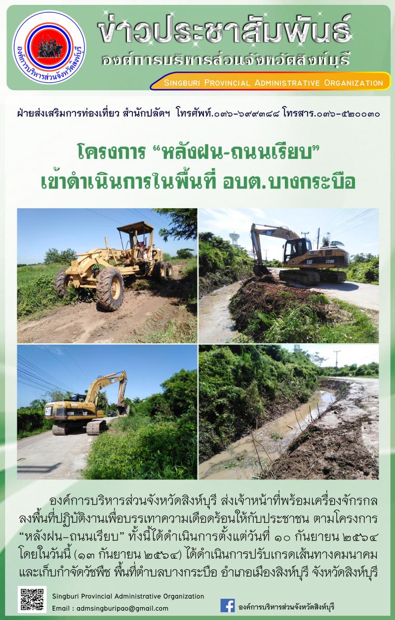 โครงการหลังฝนถนนเรียบ ลงพื้นที่ อบต.งิ้วราย อบต.บางกระบือ อบต.จักรสีห์ และอบต.ต้นโพธิ์
