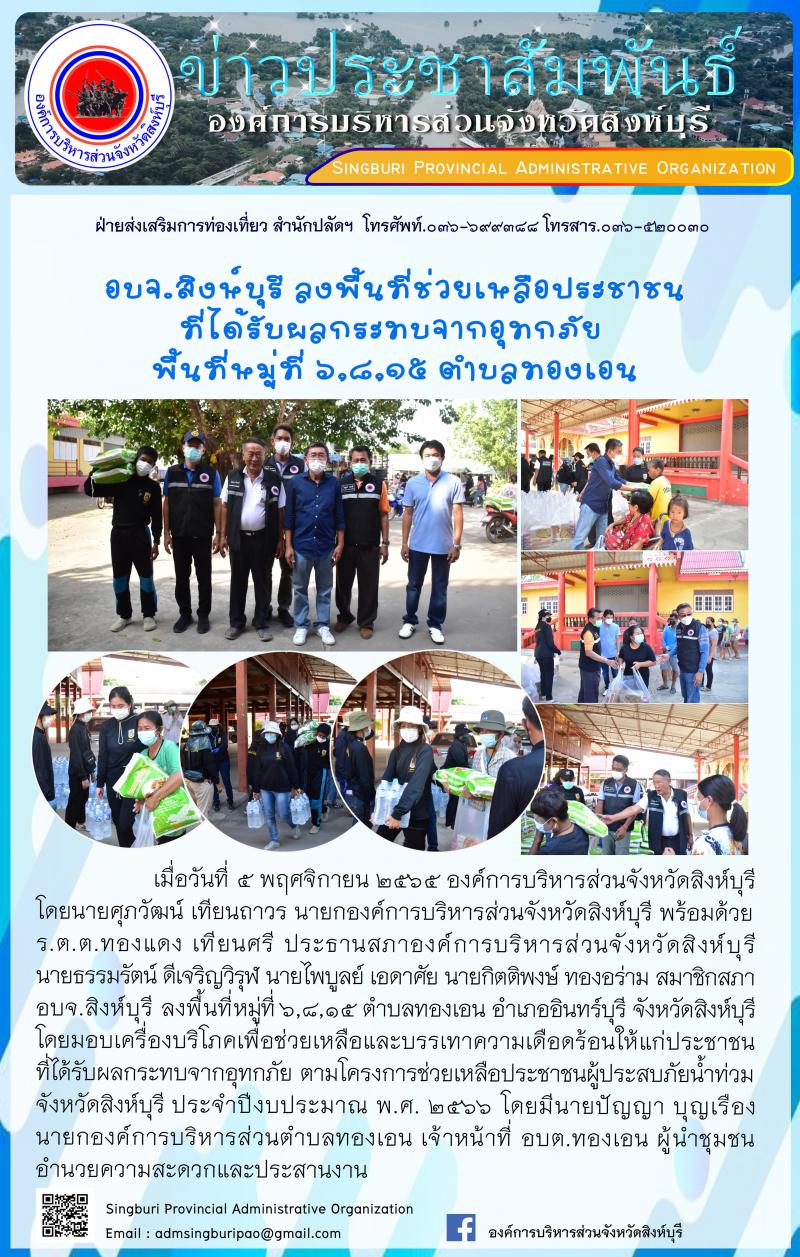 อบจ.สิงห์บุรี ลงพื้นที่ช่วยเหลือประชาชนที่ได้รับอุทกภัย พื้นที่ตำบลทองเอน
