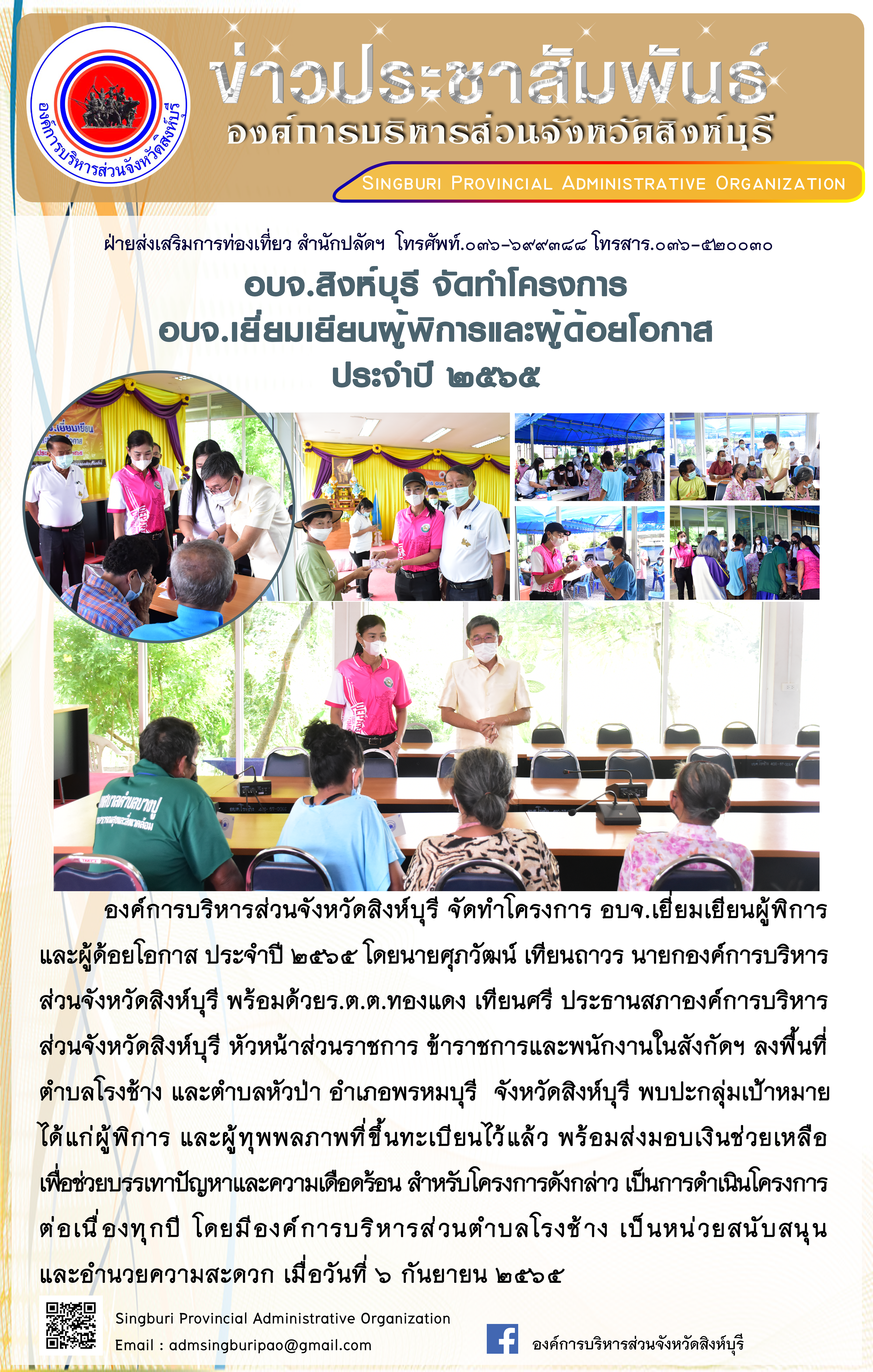 อบจ.สิงห์บุรี จัดทำโครงการ อบจ.เยี่ยมเยียนผู้พิการและด้อยโอกาส ประจำปี 2565
