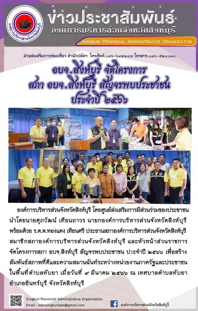 อบจ.สิงห์บุรี จัดโครงการ สภา อบจ.สิงห์บุรี สัญจรพบประชาชน ประจำปี 2566
