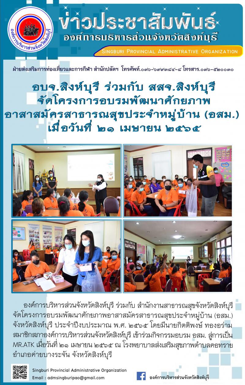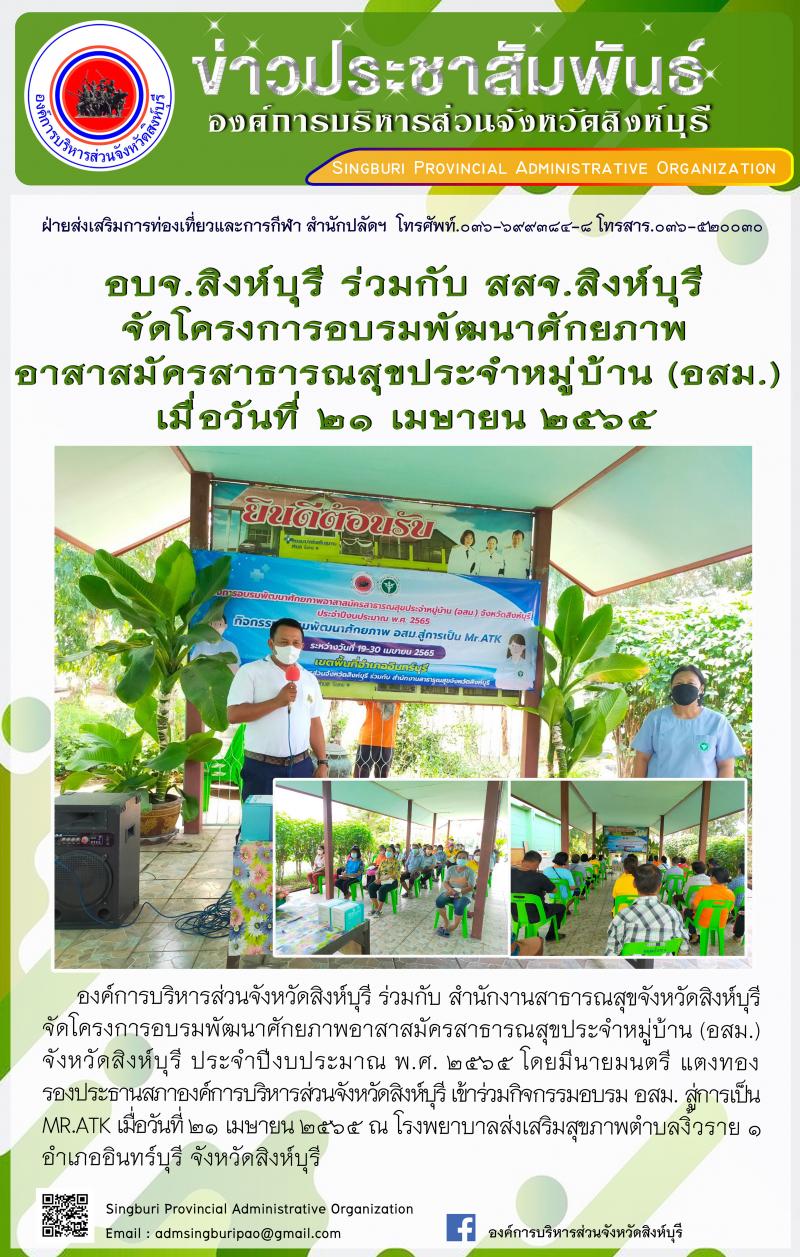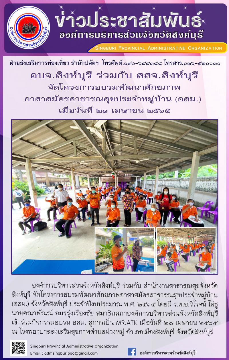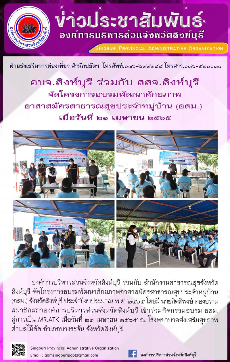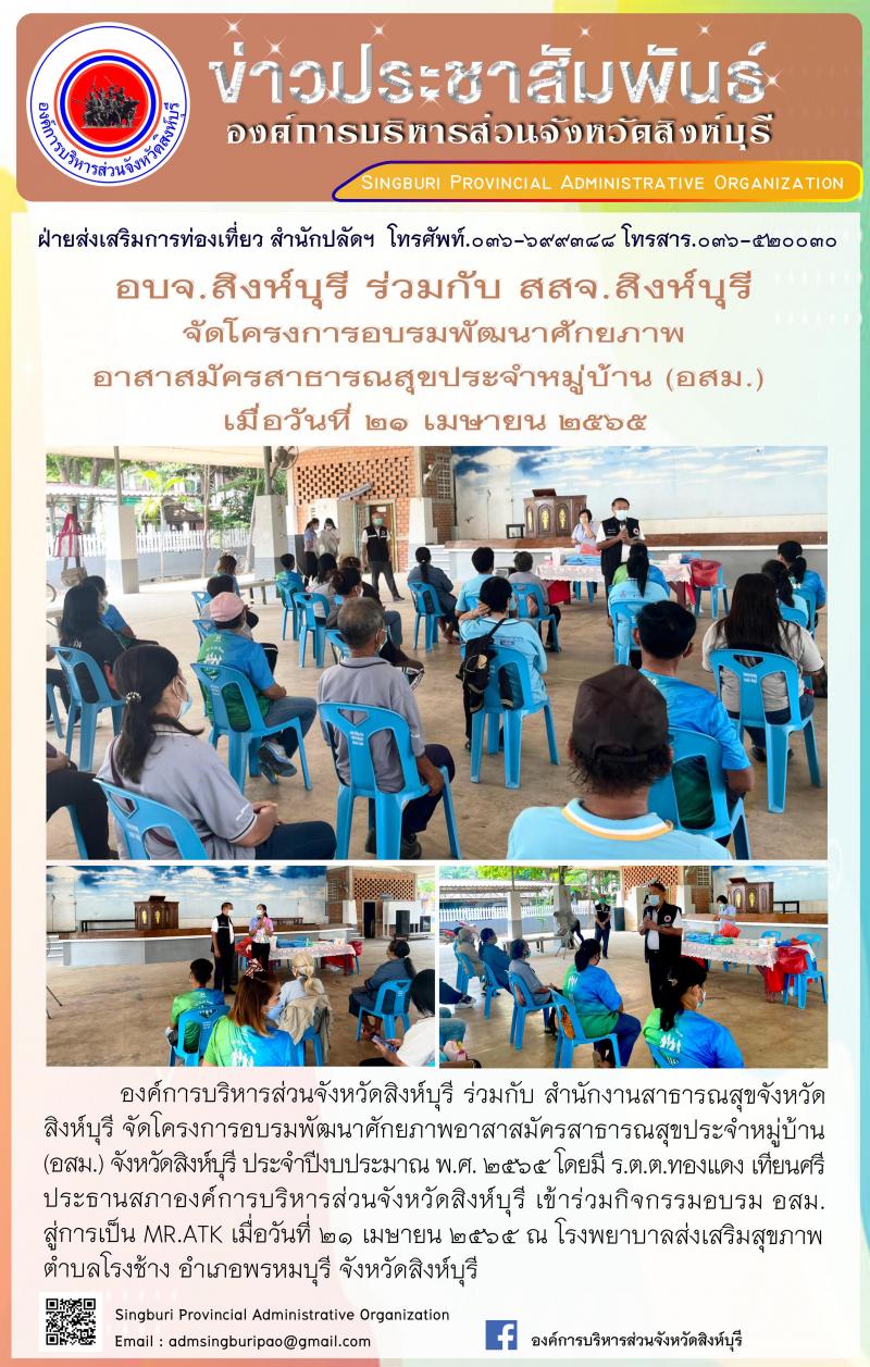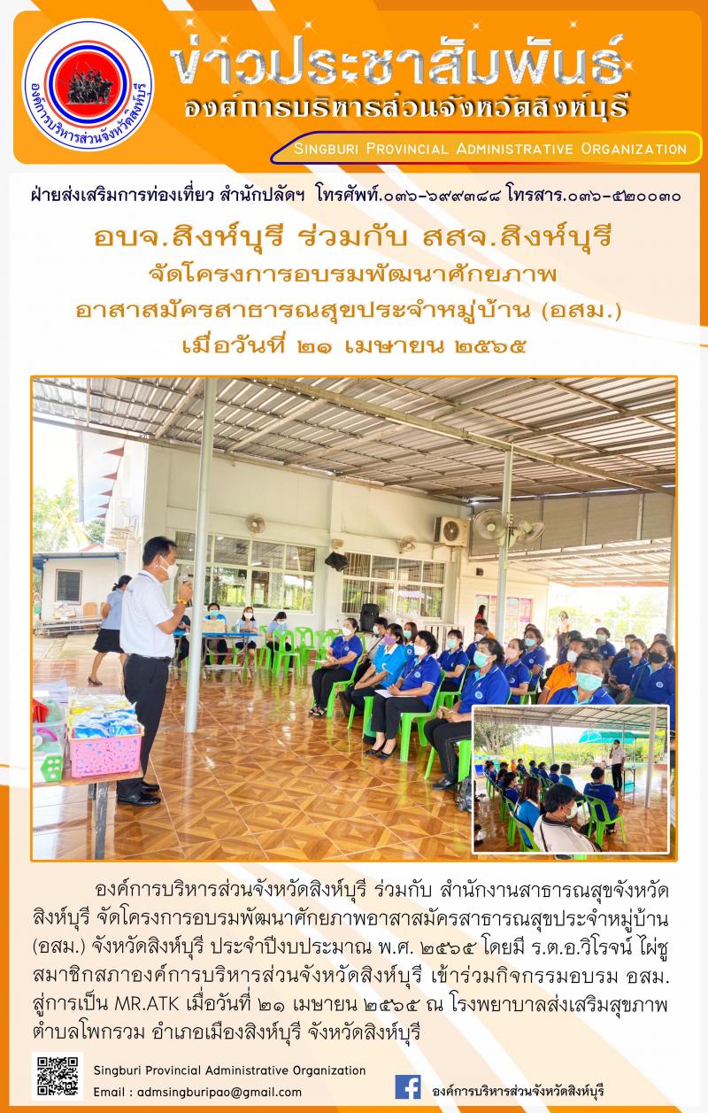 อบจ.สิงห์บุรี ร่วมกับ สสจ.สิงห์บุรี จัดโครงการอบรมพัมนาศักยภาพ อาสาสมัครสาธารณสุขประจำหมู่บ้าน (อสม.)