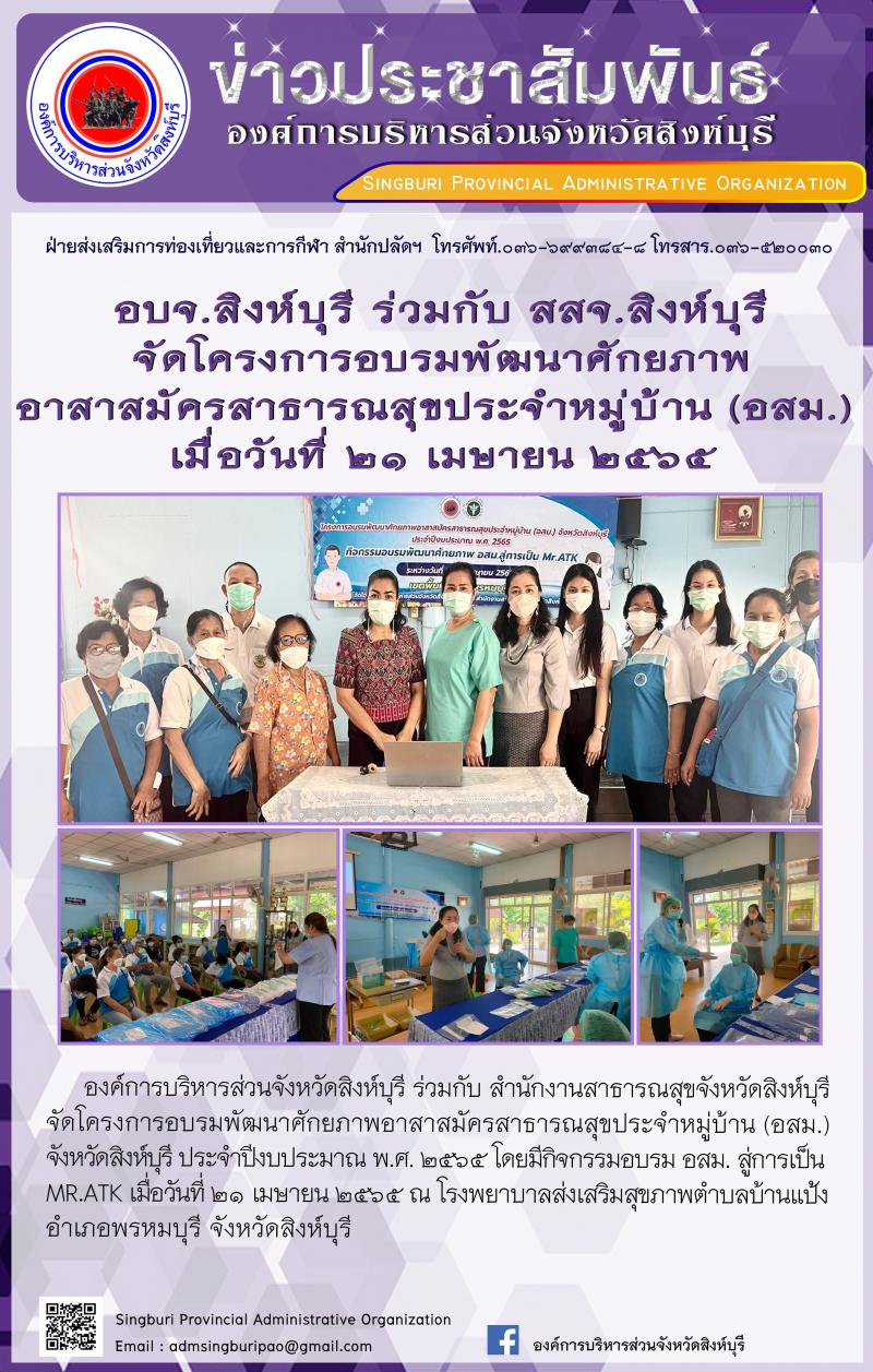 ข่าวประชาสัมพันธ์องค์การบริหารส่วนจังหวัดสิงห์บุรี