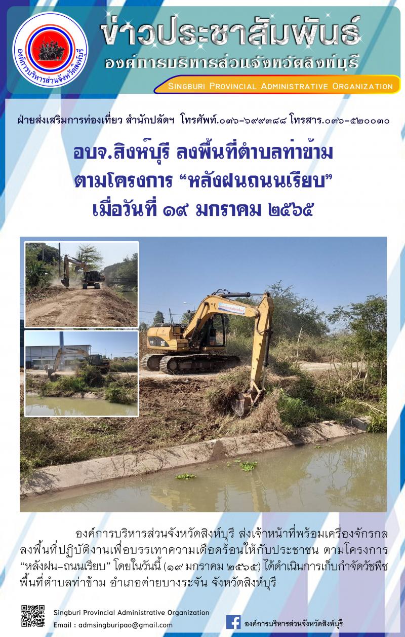 อบจ.สิงห์บุรี ลงพื้นที่ตำบลพระงาม ตามโครงการ "หลังฝนถนนเรียบ"