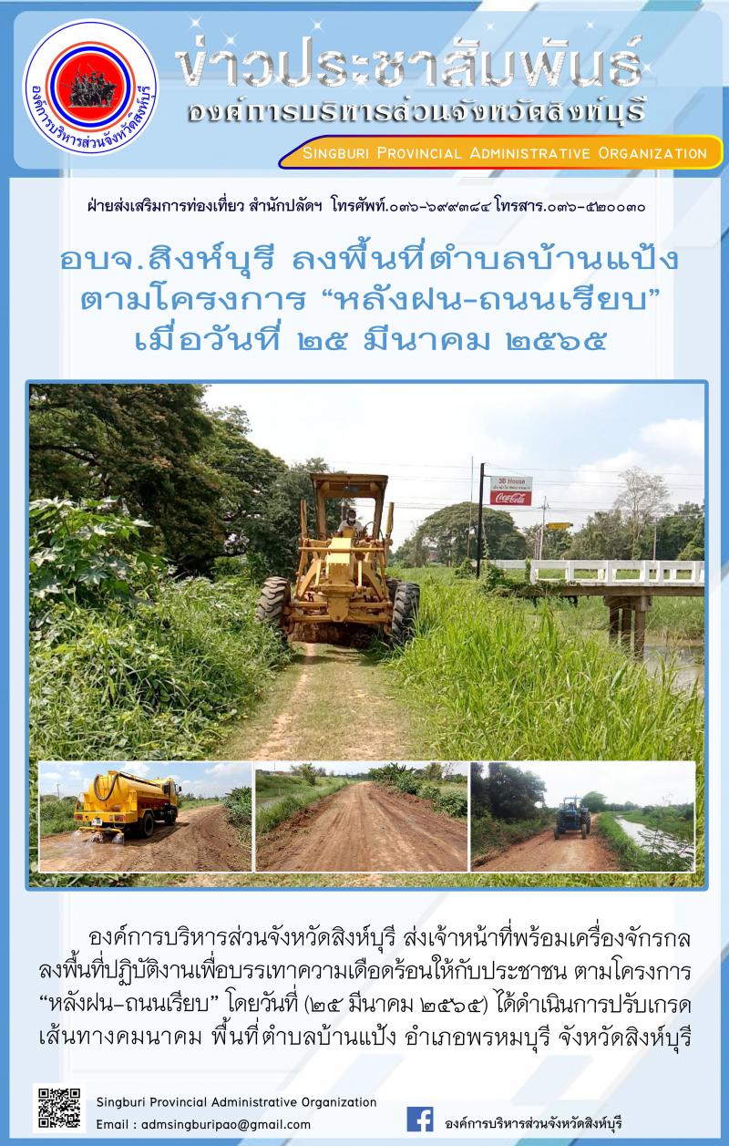 โครงการหลังฝนถนนเรียบ ลงพื้นที่ตำบลบ้านแป้ง