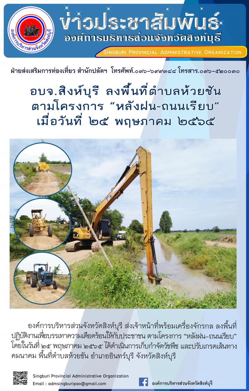อบจ.สิงห์บุรี ลงพื้นที่ ตามโครงการ "หลังฝนถนนเรียบ"