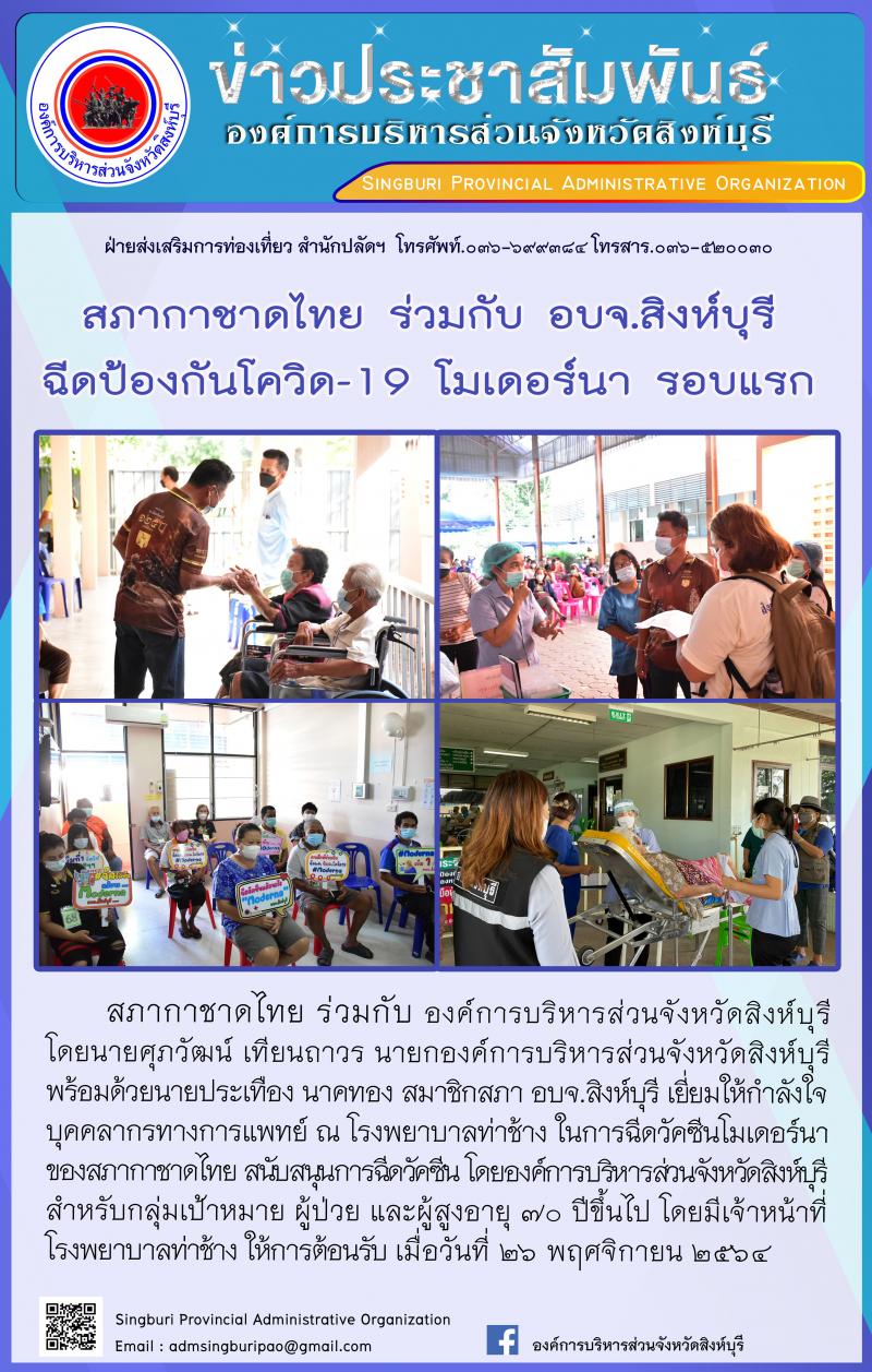 สภากาชาดไทย ร่วมกับ อบจ.สิงห์บุรี ฉีดป้องกันโควิด-19 โมเดอร์นา รอบแรก