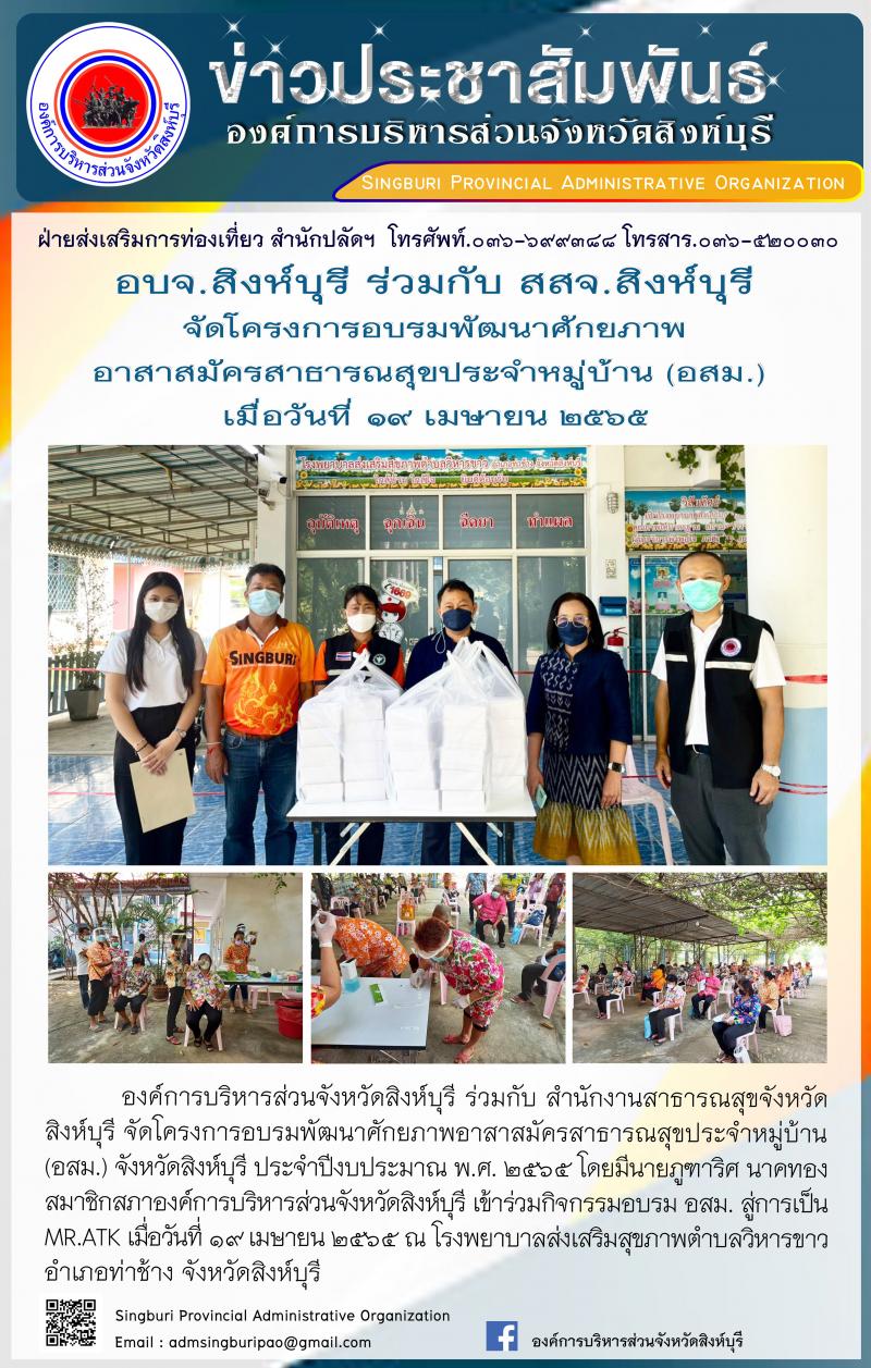 อบจ.สิงห์บุรี ร่วมกับ สสจ.สิงห์บุรี จัดโครงการอบรมพัมนาศักยภาพ อาสาสมัครสาธารณสุขประจำหมู่บ้าน (อสม.)