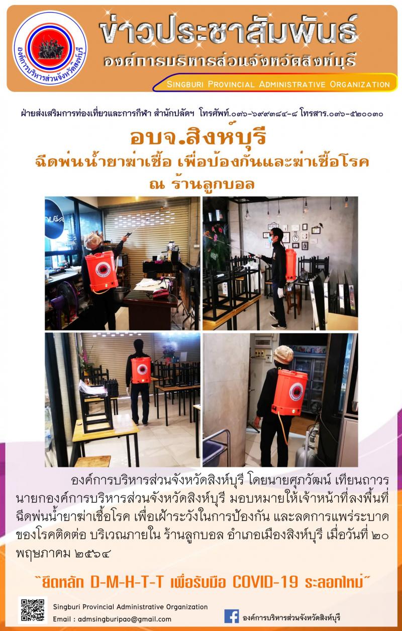 อบจ.สิงห์บุรี ฉีดพ่นน้ำยาฆ่าเชื้อ เพื่อป้องกันและฆ่าเชื้อโรค ณ ธนาคารกรุงไทย สาขาเทสโก้โลตัส สิงห์บุรี และ ร้านลูกบอล