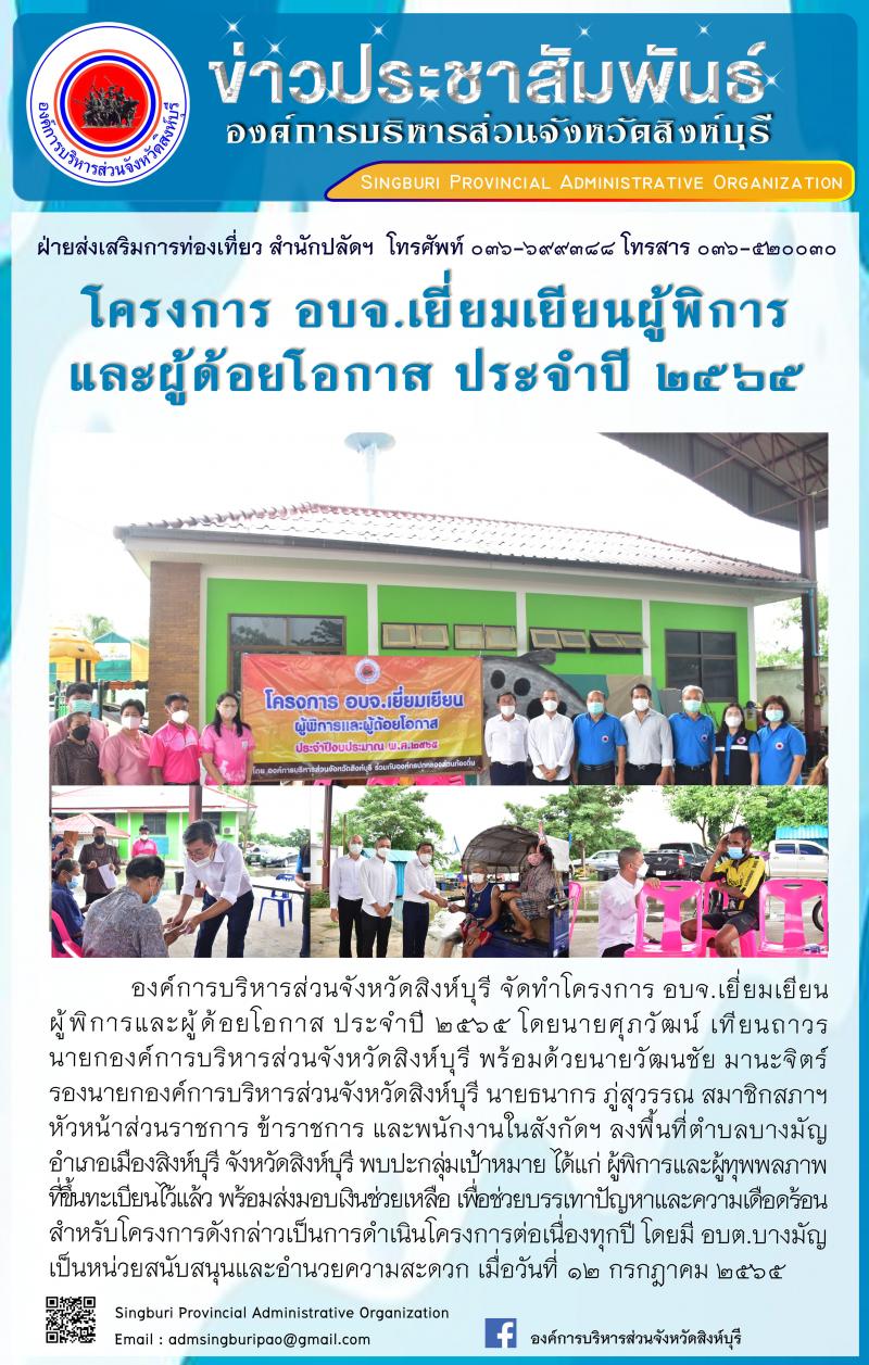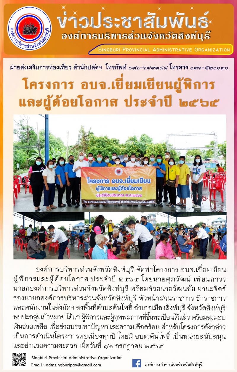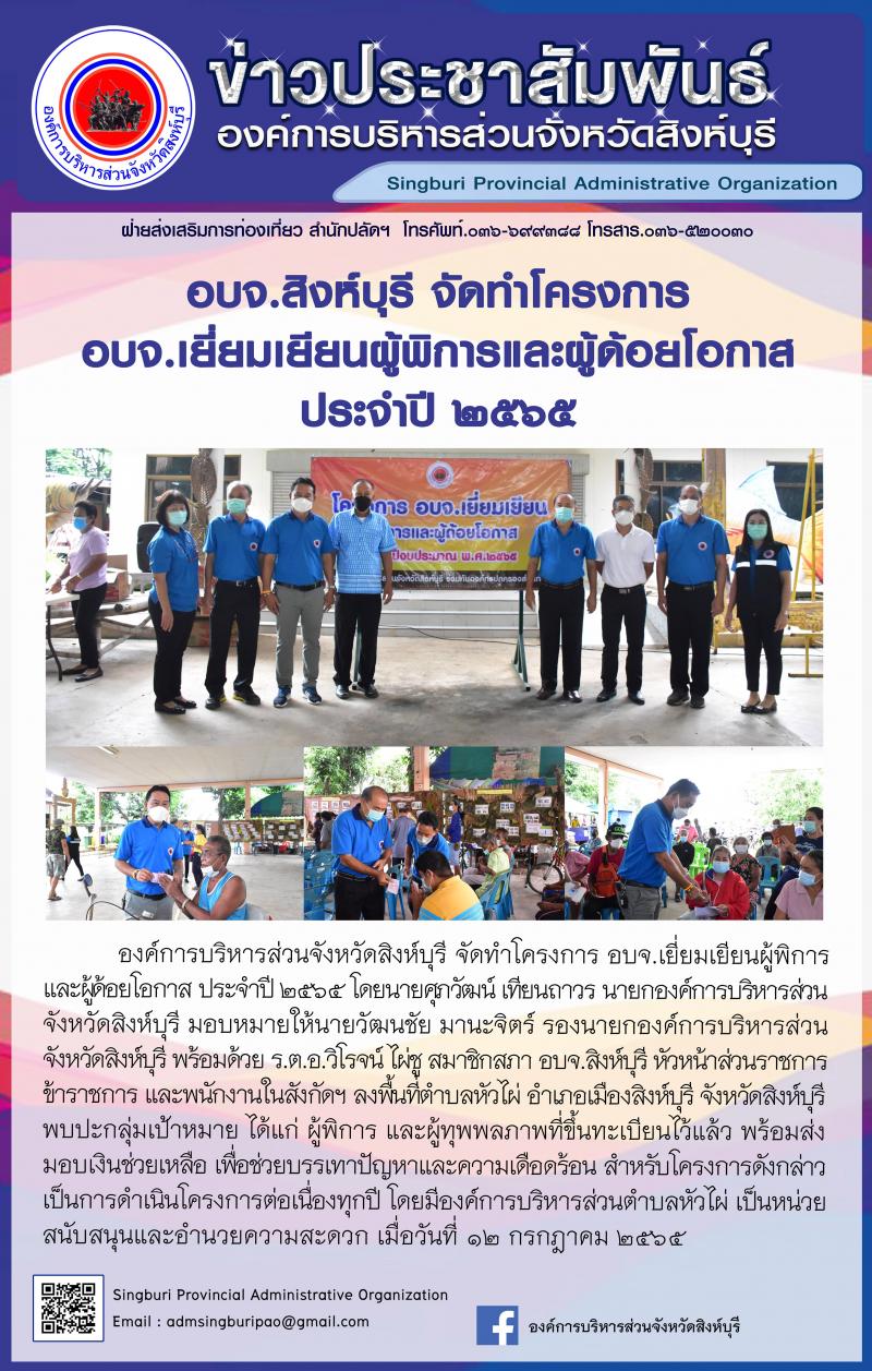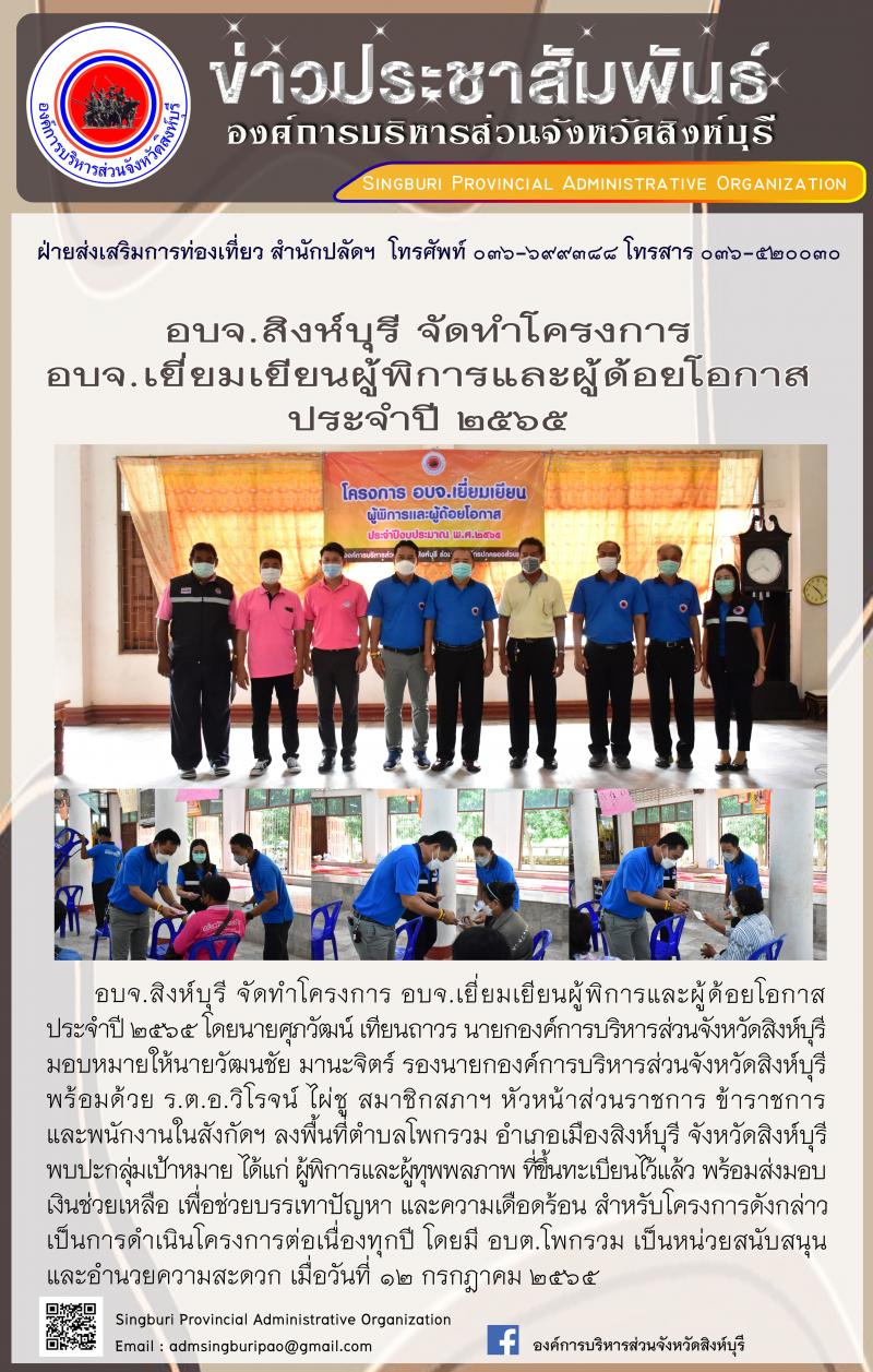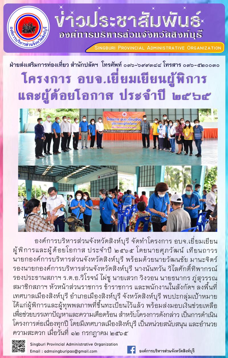 อบจ.สิงห์บุรี จัดทำโครงการ อบจ.เยี่ยมเยียนผู้พิการและผู้ด้อยโอกาส ประจำปี 2565
