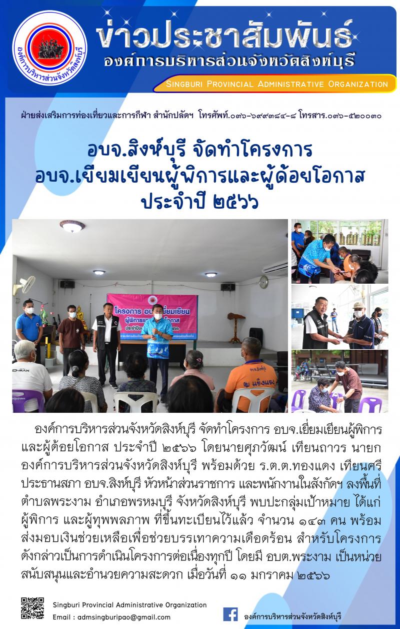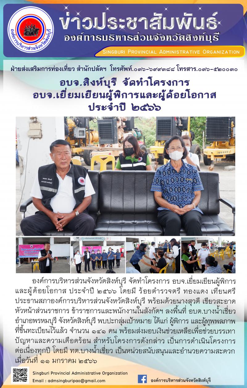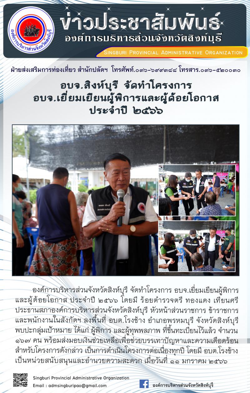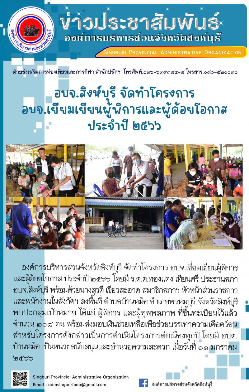 อบจ.สิงห์บุรี จัดโครงการ อบจ.เยี่ยมเยือนผุ้พิการและผู้ด้อยโอกาส ประจำปี 2566