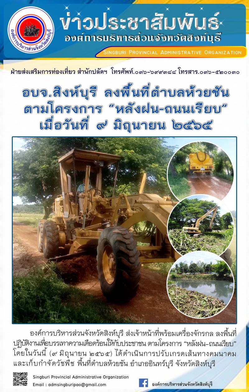 อบจ.สิงห์บุรี ลงพื้นที่ตามโครงการ "หลังฝน-ถนนเรียบ"