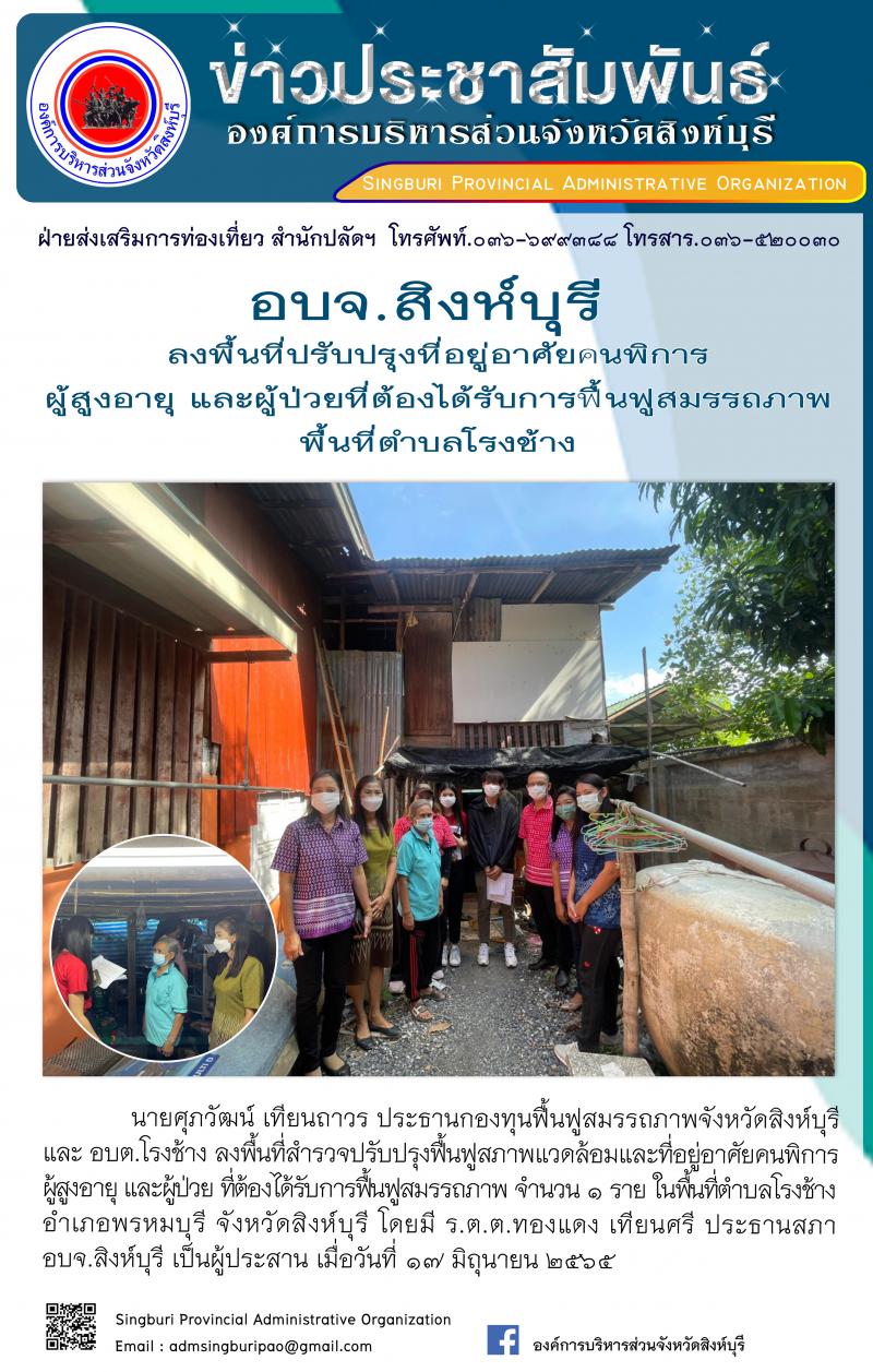 อบจ.สิงห์บุรี ลงพื้นที่ปรับปรุงที่อยู่อาศัยคนพิการ ผู้สูงอายุและผู้ป่วยที่ต้องได้รับการฟื้นฟูสมรรถภาพ