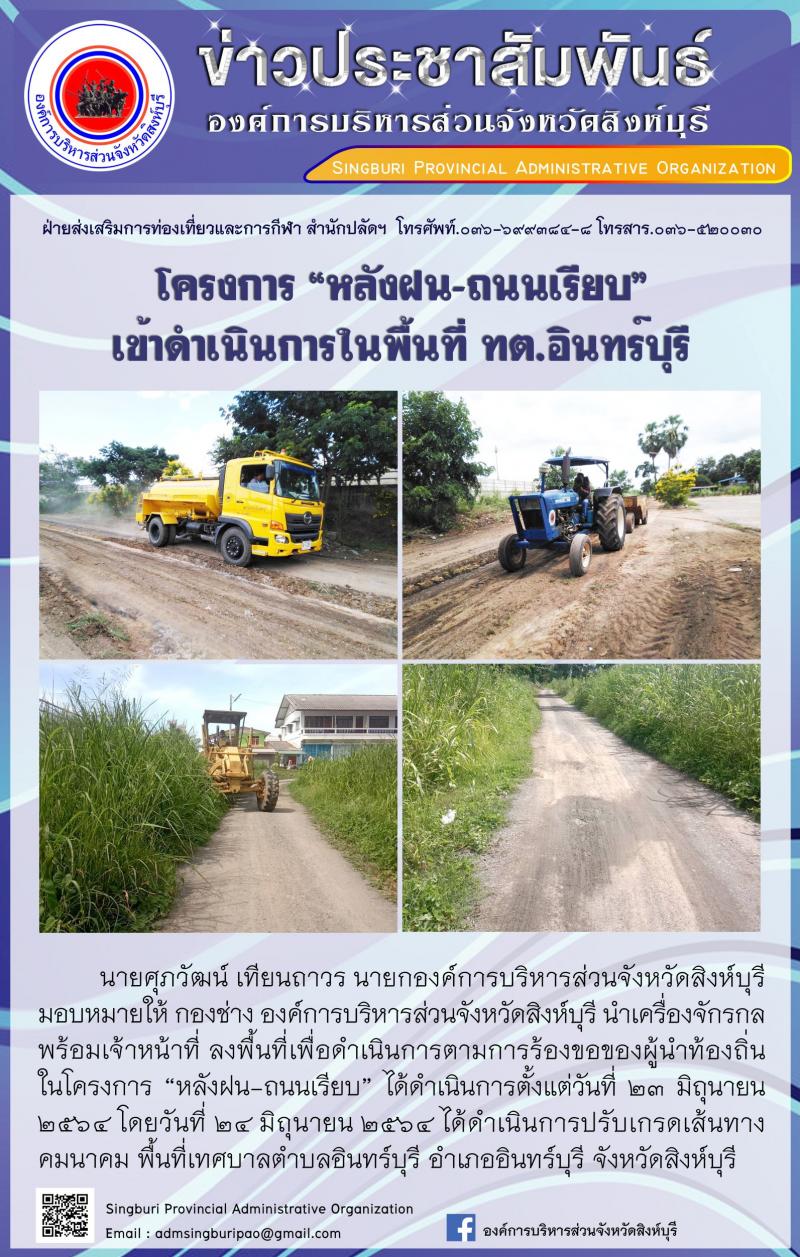 โครงการหลังฝนถนนเรียบ ลงพื้นที่ อบต.ชีน้ำร้าย ทต.อินทร์บุรี และอบต.ม่วงหมู่