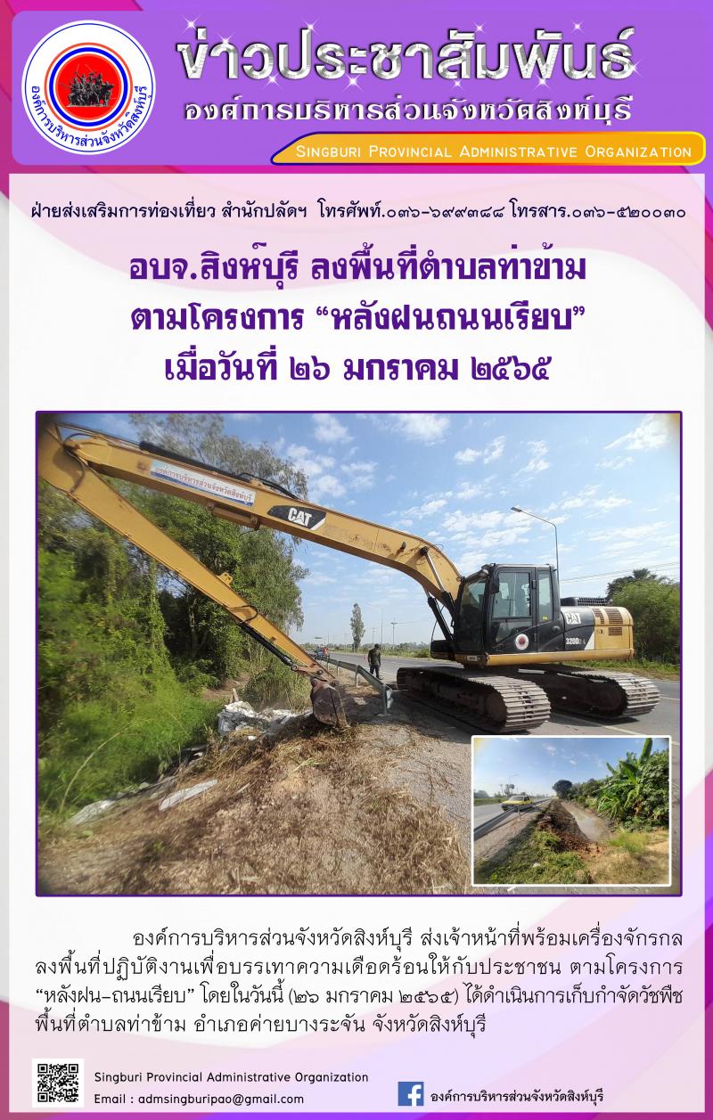 อบจ.สิงห์บุรี ลงพื้นที่ตำบลโพสังโฆ ตามโครงการ "หลังฝนถนนเรียบ"