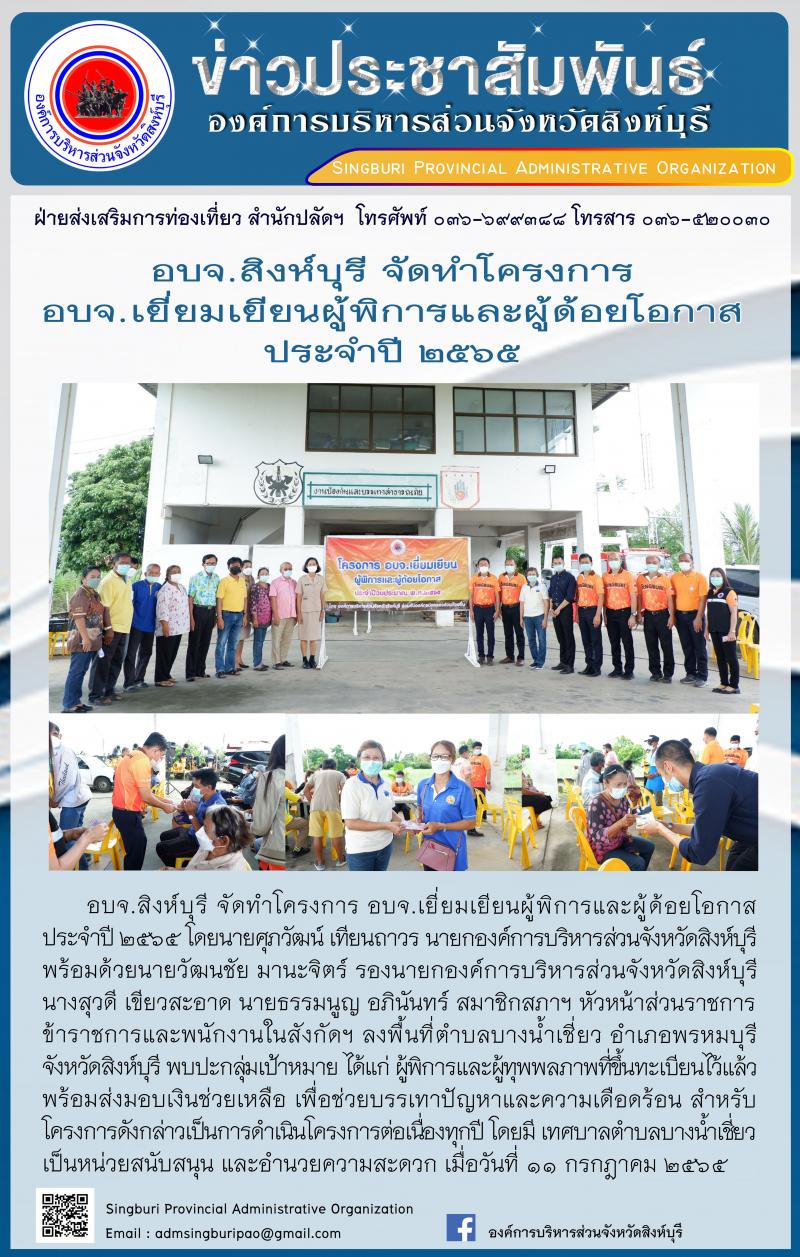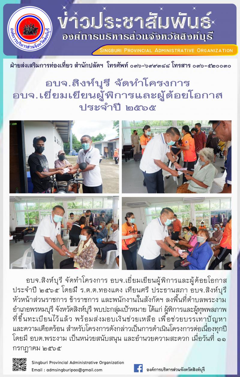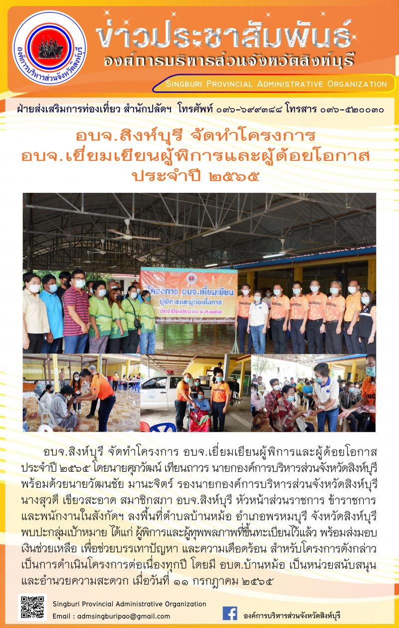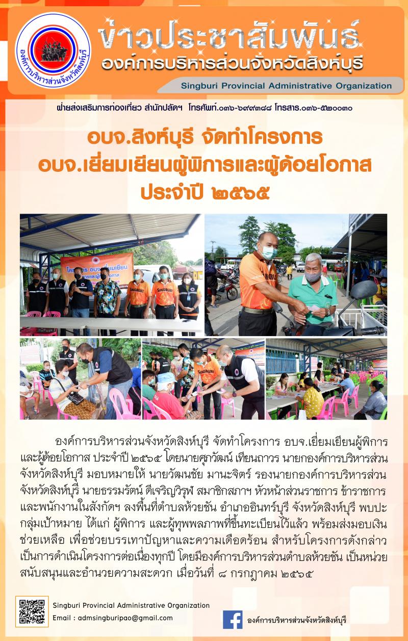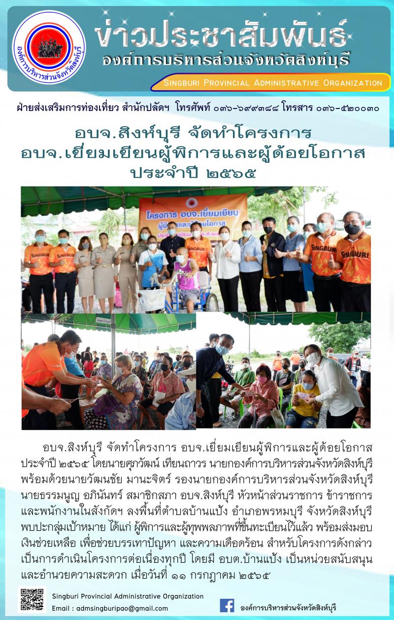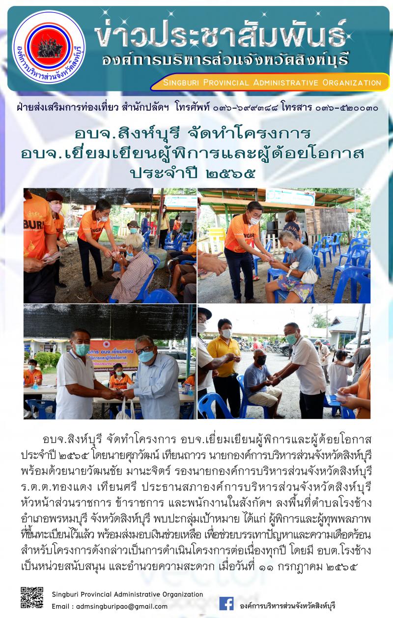 อบจ.สิงห์บุรี จัดทำโครงการ อบจ.เยี่ยมเยียนผู้พิการและผู้ด้อยโอกาส ประจำปี 2565