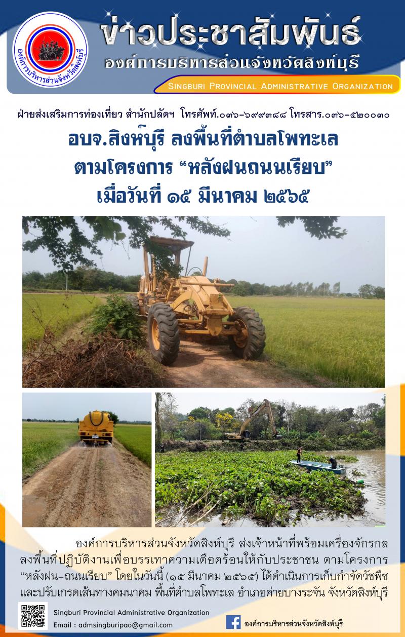 อบจ.สิงห์บุรี ลงพื้นที่ตามโครงการ "หลังฝนถนนเรียบ"