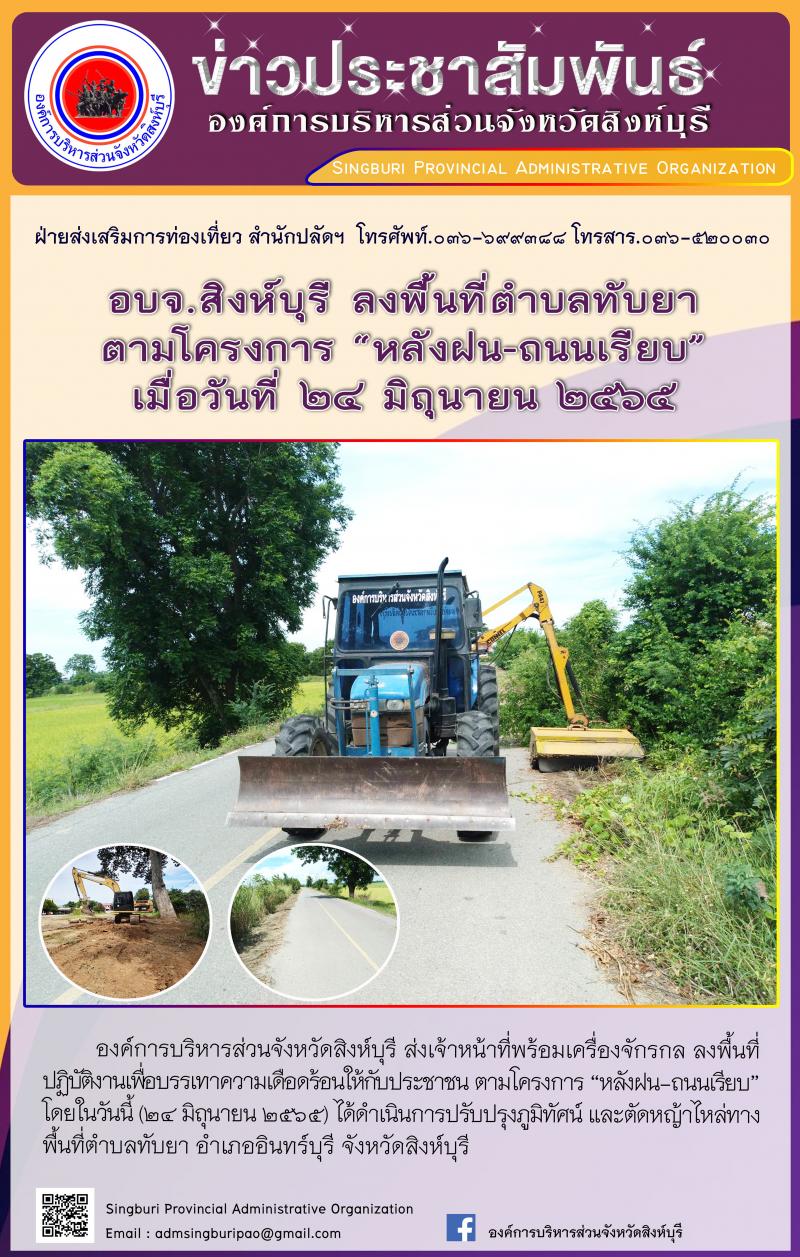 อบจ.สิงห์บุรี ลงพื้นที่ตามโครงการ "หลังฝน-ถนนเรียบ"