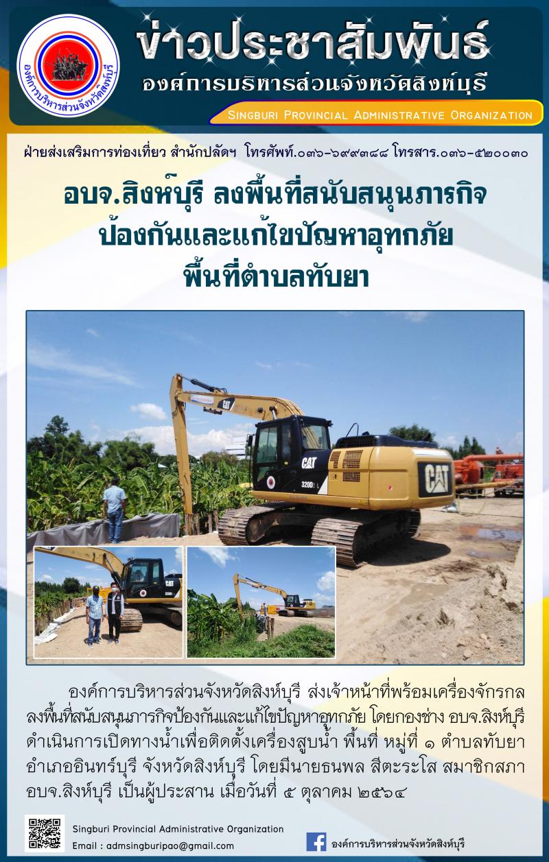 อบจ.สิงห์บุรี ลงพื้นที่สนับสนุนภารกิจการป้องกันอุทกภัย พื้นที่ตำบลทับยา และตำบลสิงห์