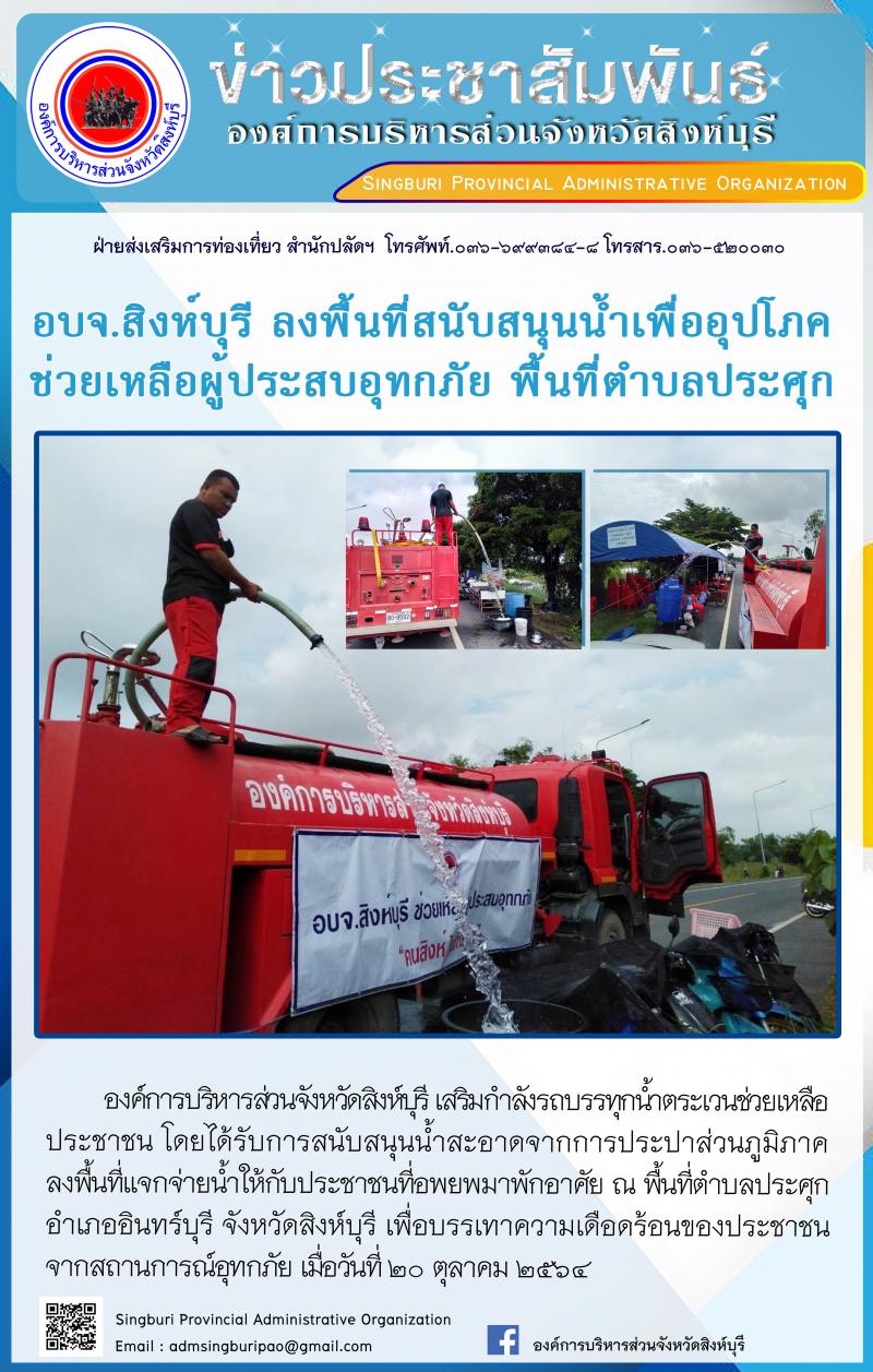 อบจ.สิงห์บุรี ลงพื้นที่สนับสนุนน้ำเพื่ออุปโภค ช่วยเหลือผู้ประสบอุทกภัย