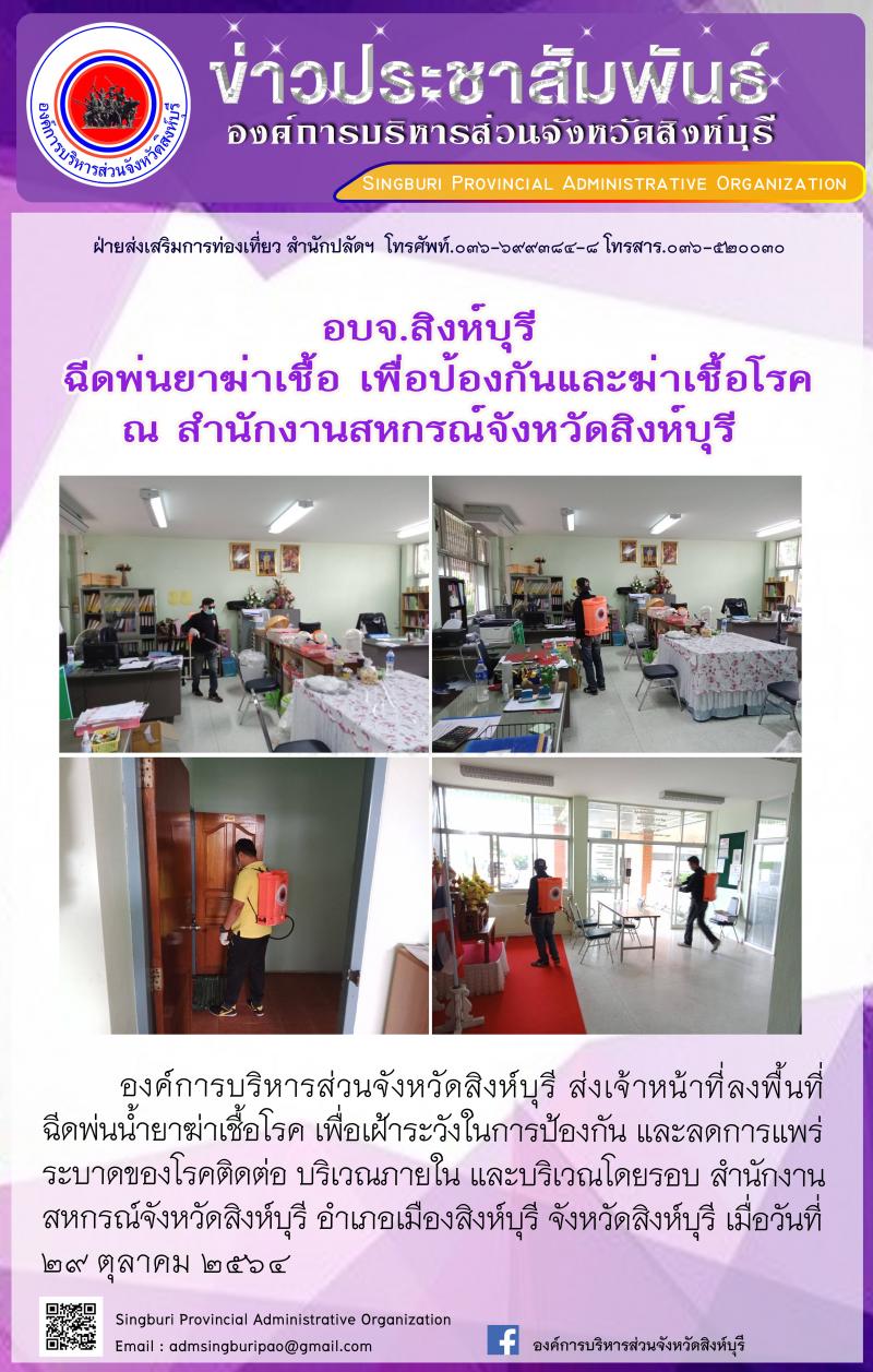 อบจ.สิงห์บุรี ฉีดพ่นน้ำยาฆ่าเชื้อ เพื่อป้องกันและฆ่าเชื้อโรค