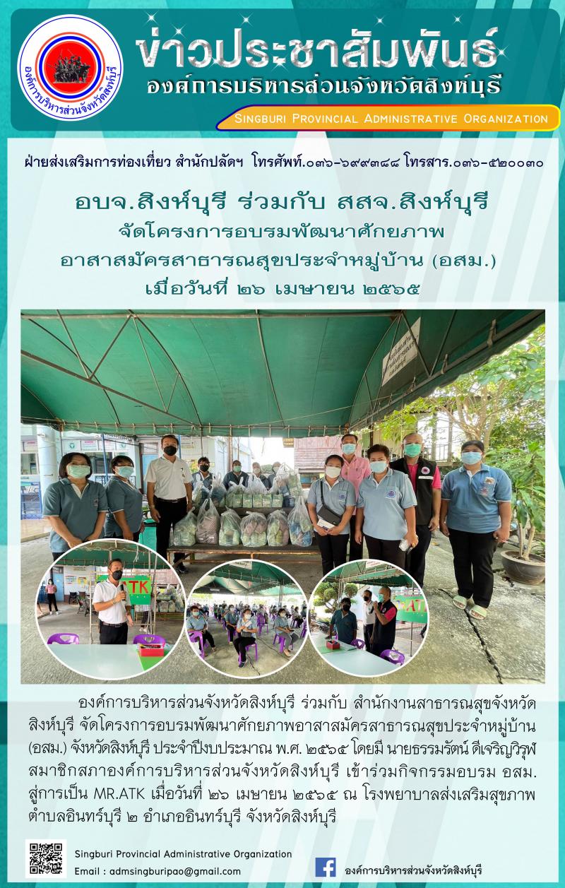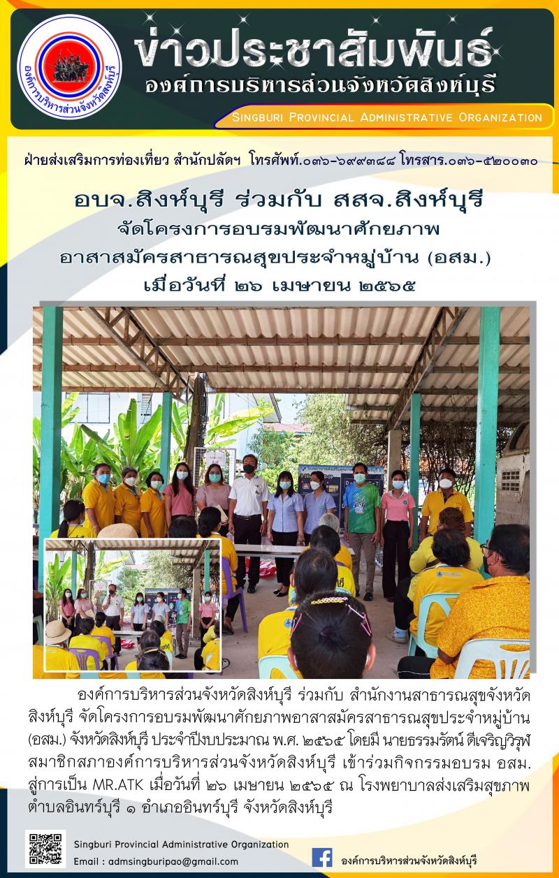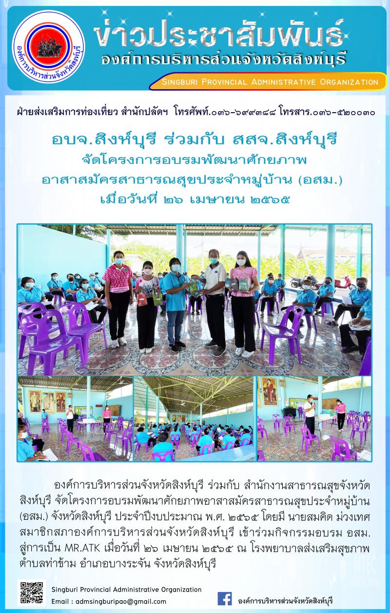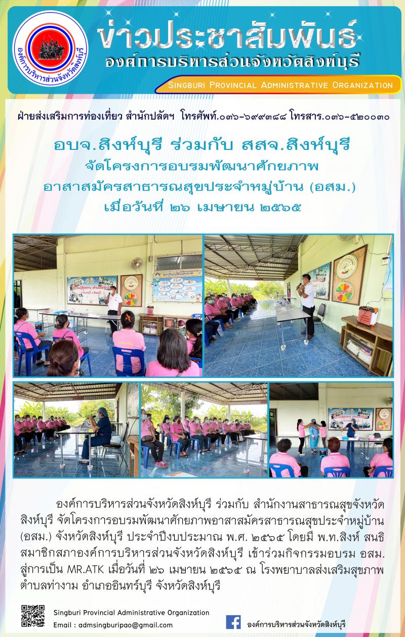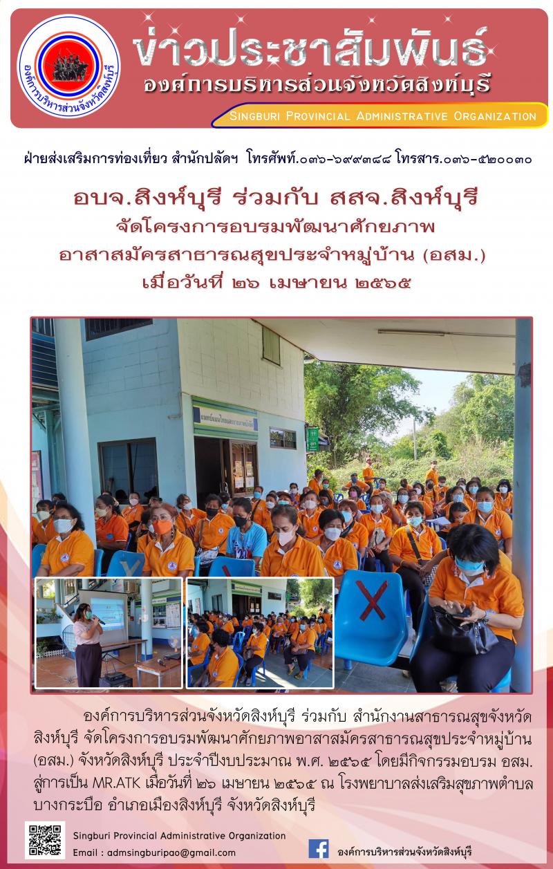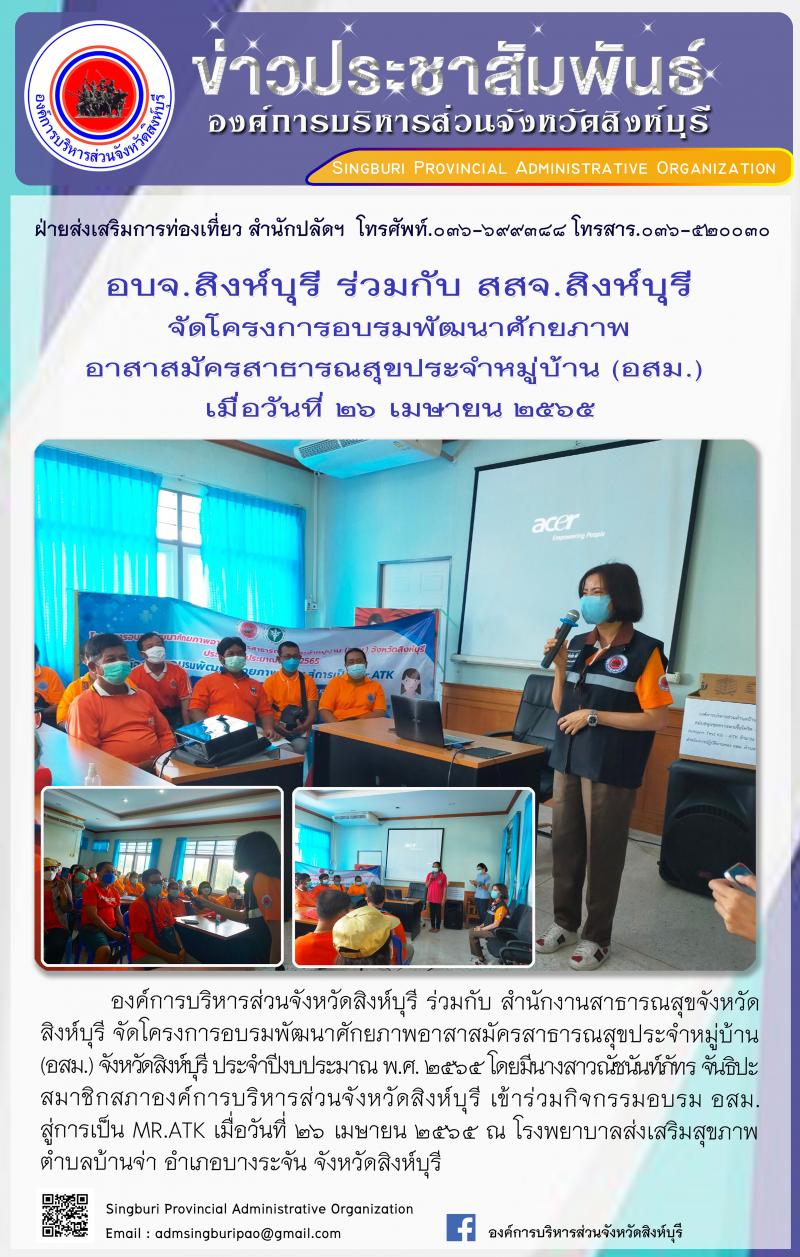อบจ.สิงห์บุรี ร่วมกับ สสจ.สิงห์บุรี จัดโครงการอบรมพัมนาศักยภาพ อาสาสมัครสาธารณสุขประจำหมู่บ้าน (อสม.)