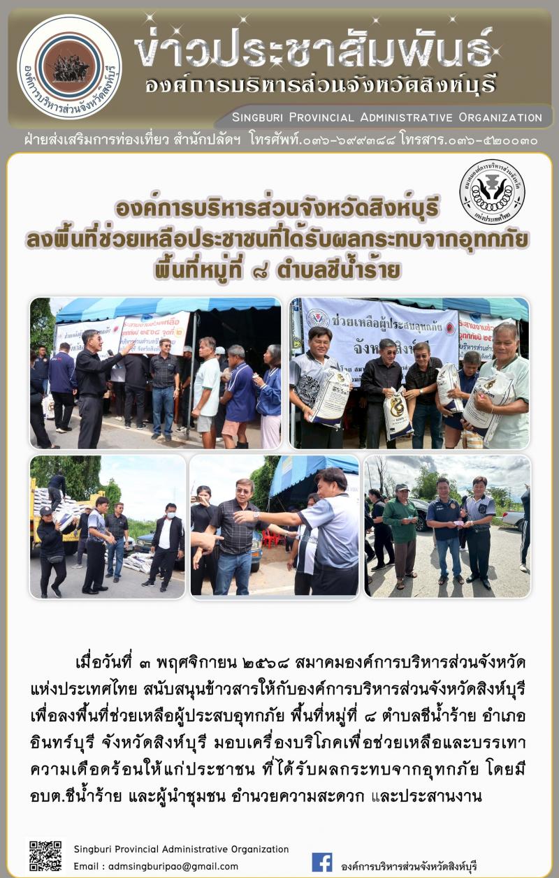 องค์การบริหารส่วนจังหวัดสิงห์บุรี ลงพื้นที่ช่วยเหลือ ประชาชนที่ได้รับผลกระทบจากอุทกภัย พื้นที่ตำบลชีน้ำร้าย
