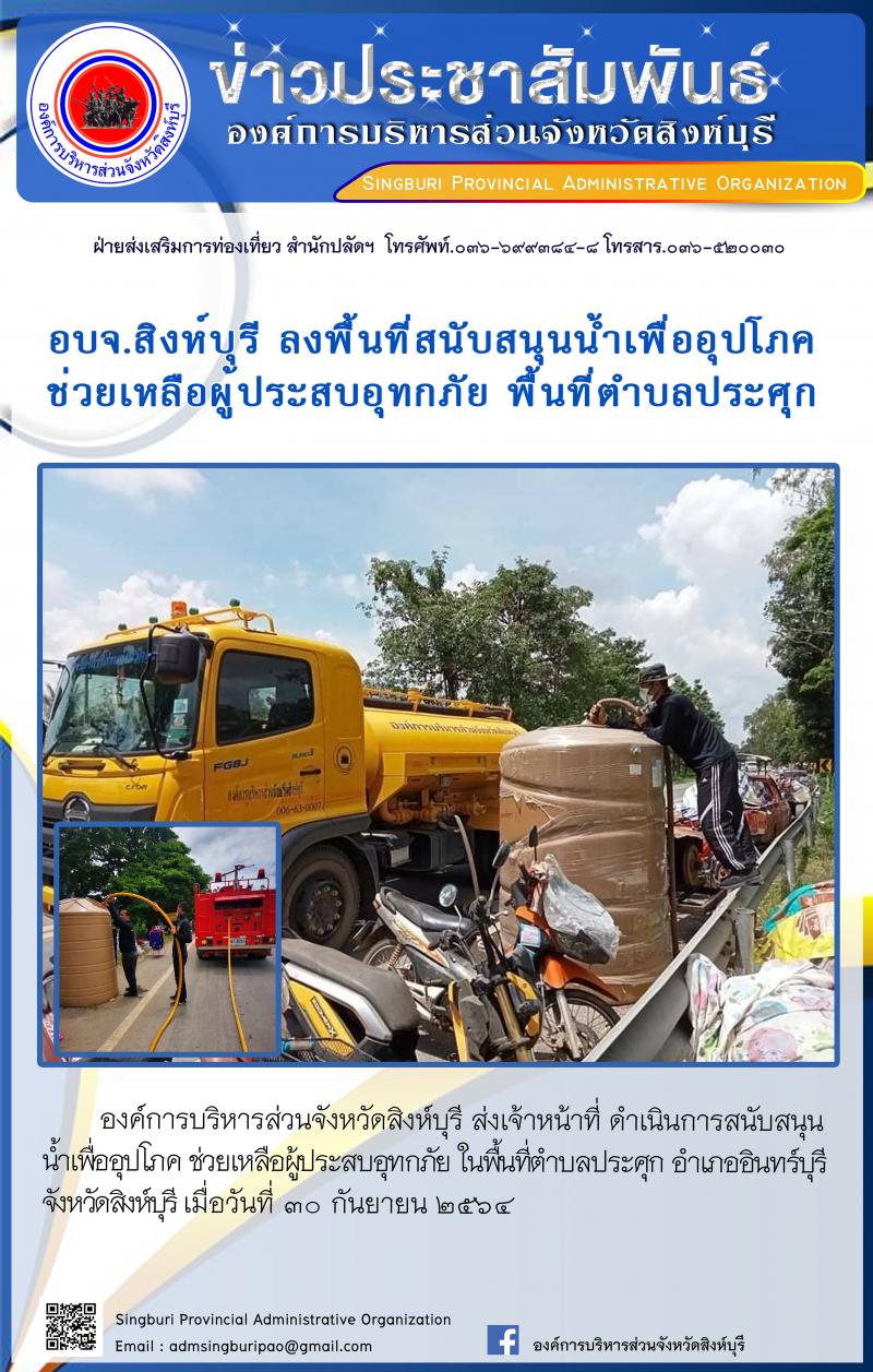 อบจ.สิงห์บุรี ลงพื้นที่สนับสนุนน้ำเพื่ออุปโภคบริโภค ช่วยเหลือผู้ประสบอุทกภัย