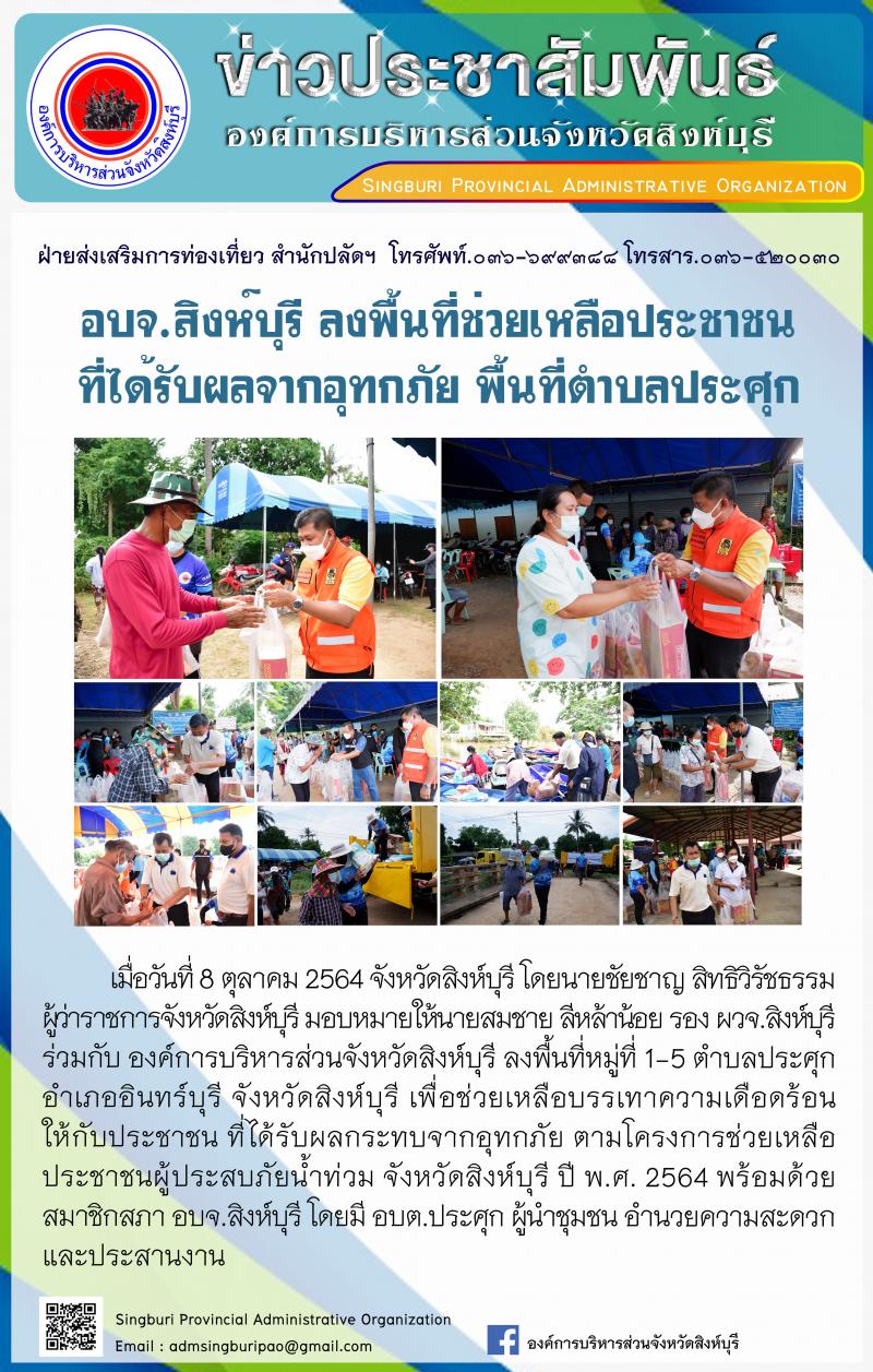 อบจ.สิงห์บุรี ลงพื้นที่ช่วยเหลือประชาชน ที่ได้รับผลจากอุทกภัย พื้นที่ตำบลทับยา และตำบลประศุก