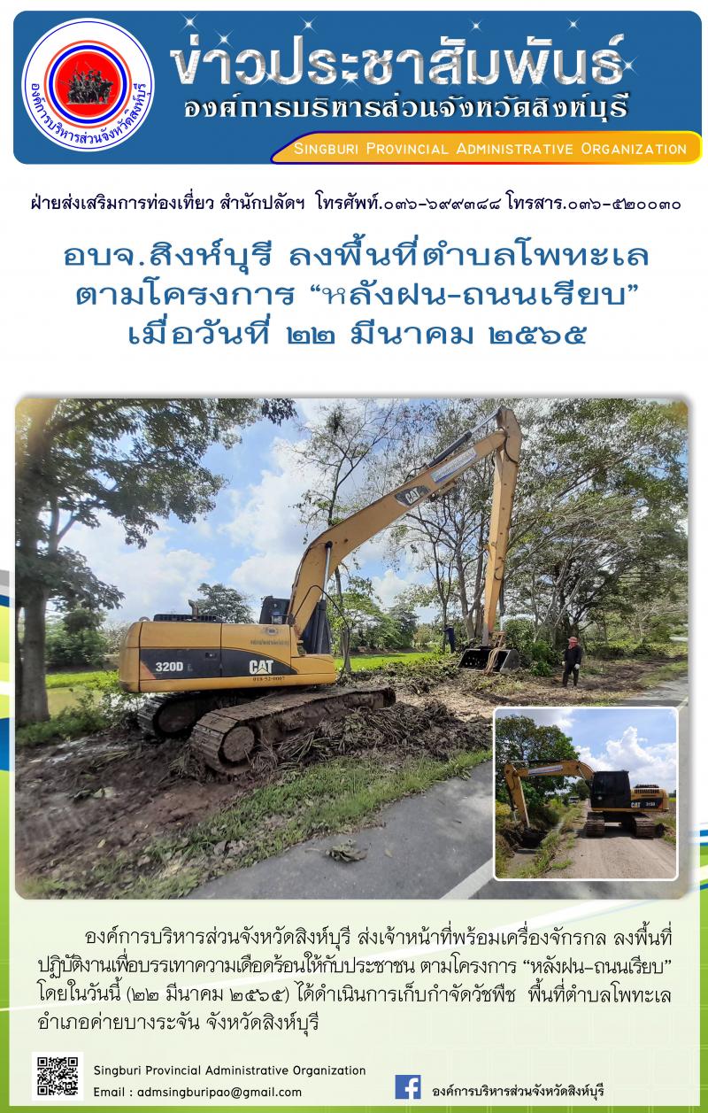 อบจ.สิงห์บุรี ลงพื้นที่ ตามโครงการ "หลังฝนถนนเรียบ"