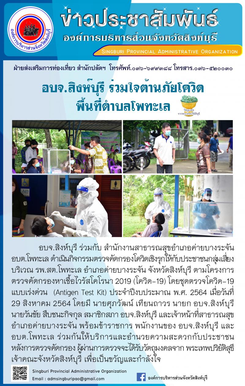 อบจ.สิงห์บุรี ร่วมใจต้านภัยโควิด จัดตั้งศูนย์ตรวจคัดกรองโควิด-19 เชิงรุก คนสิงห์ไม่ทิ้งกัน อบจ.สิงห์บุรี