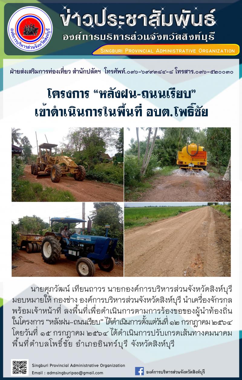โครงการหลังฝนถนนเรียบ ลงพื้นที่ อบต.น้ำตาล อบต.บางมัญ อบต.โพธิ์ชัย และ อบต.สระแจง