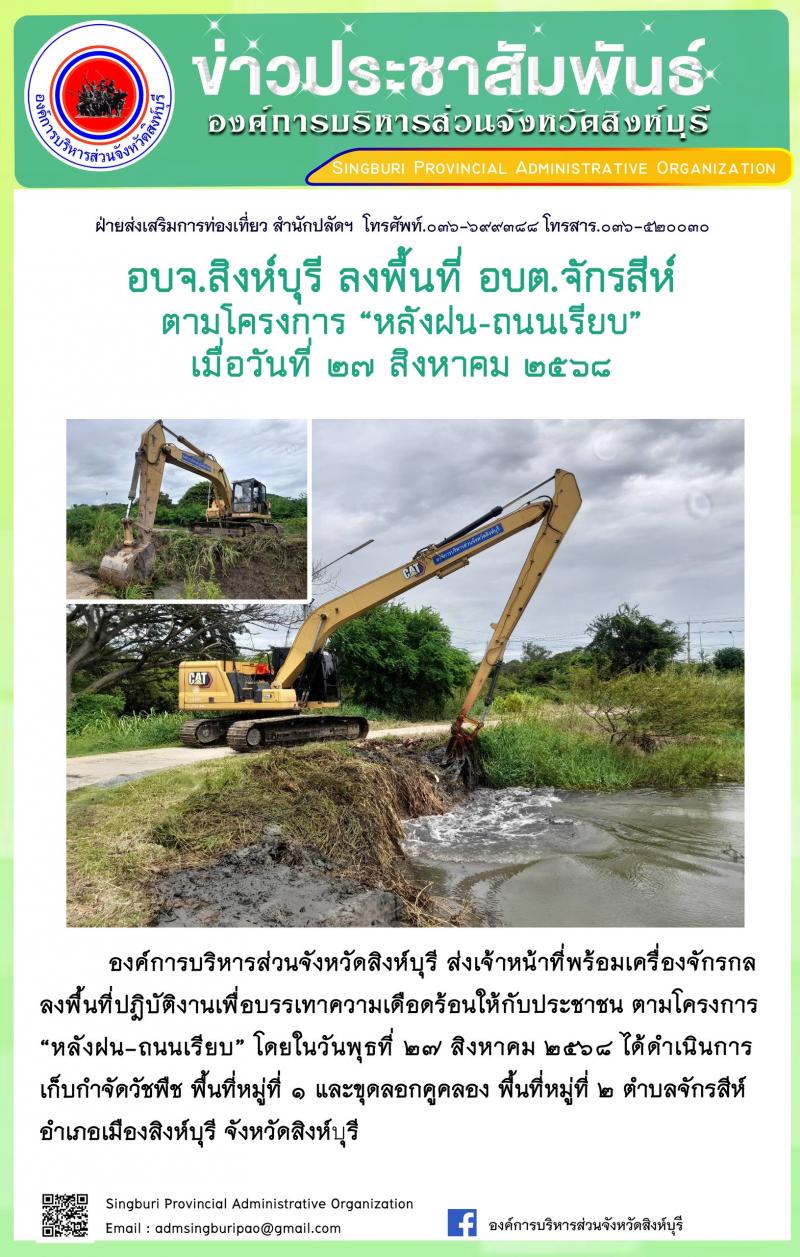 อบจ. สิงห์บุรี ลงพื้นที่ อบต.ต้นโพธิ์ ตามโครงการ “ หลังฝน-ถนนเรียบ”