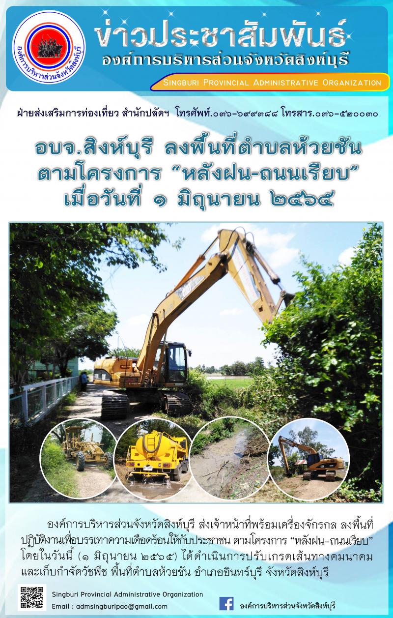 อบจ.สิงห์บุรี ลงพื้นที่ ตามโครงการ "หลังฝน-ถนนเรียบ"
