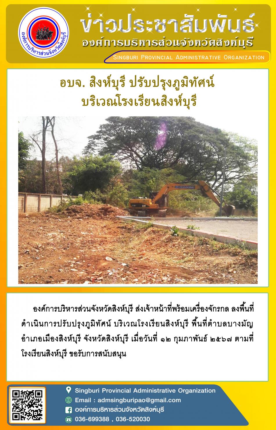 อบจ.สิงห์บุรี ปรับปรุงภูมิทัศน์ บริเวณโรงเรียนสิงห์บุรี