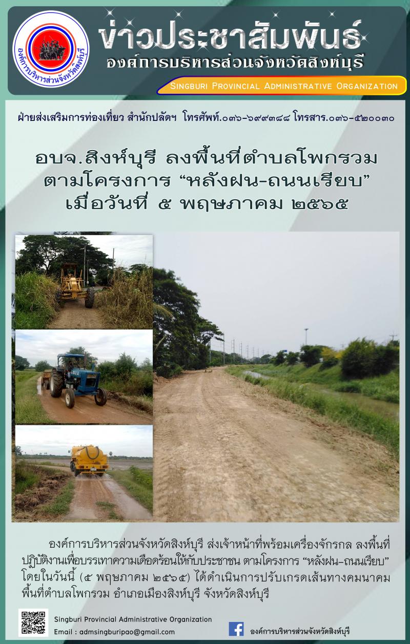 อบจ.สิงห์บุรี ลงพื้นที่ตามโครงการ "หลังฝนถนนเรียบ"