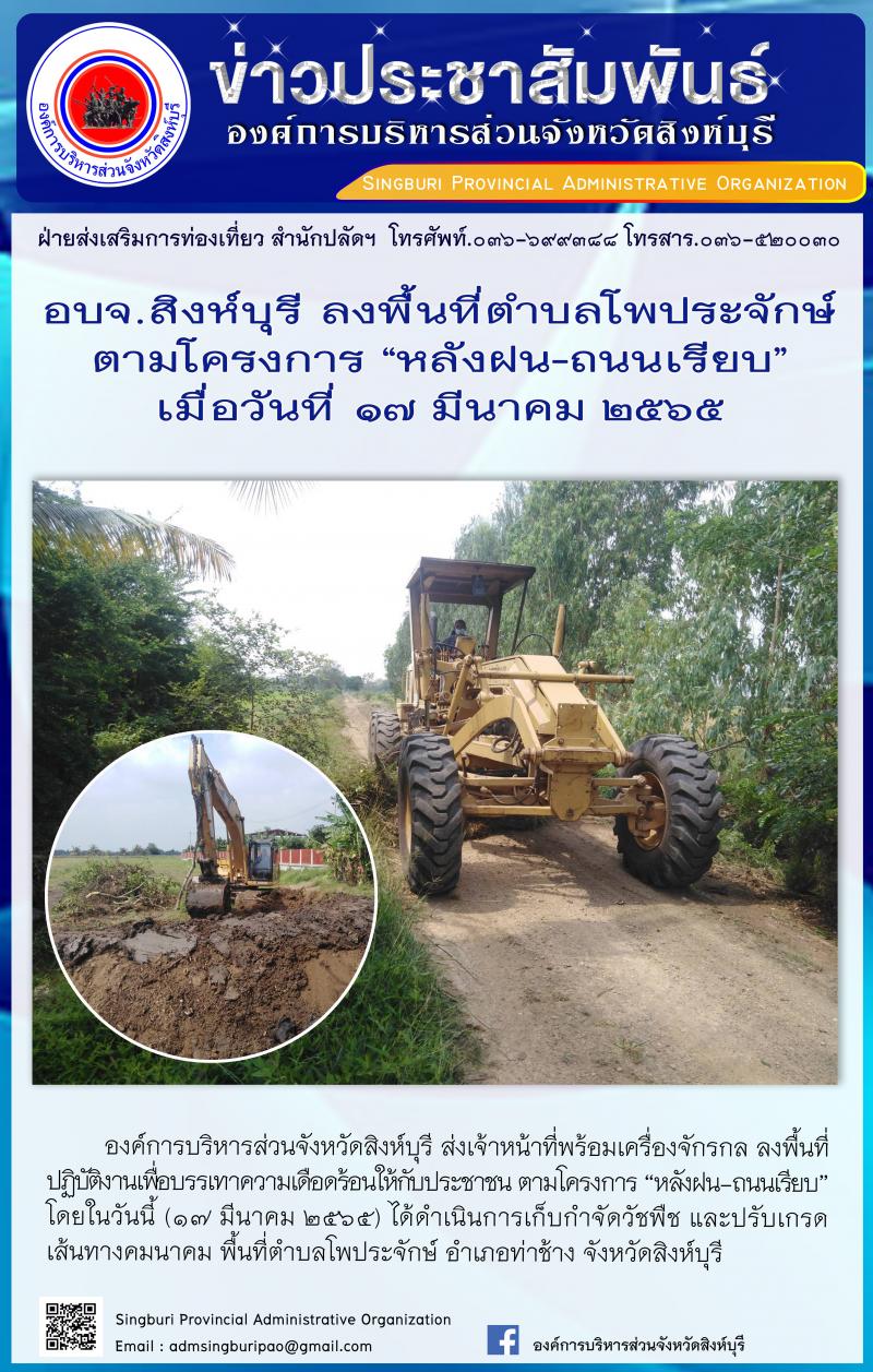 อบจ.สิงห์บุรี ลงพื้นที่ ตามโครงการ "หลังฝนถนนเรียบ"
